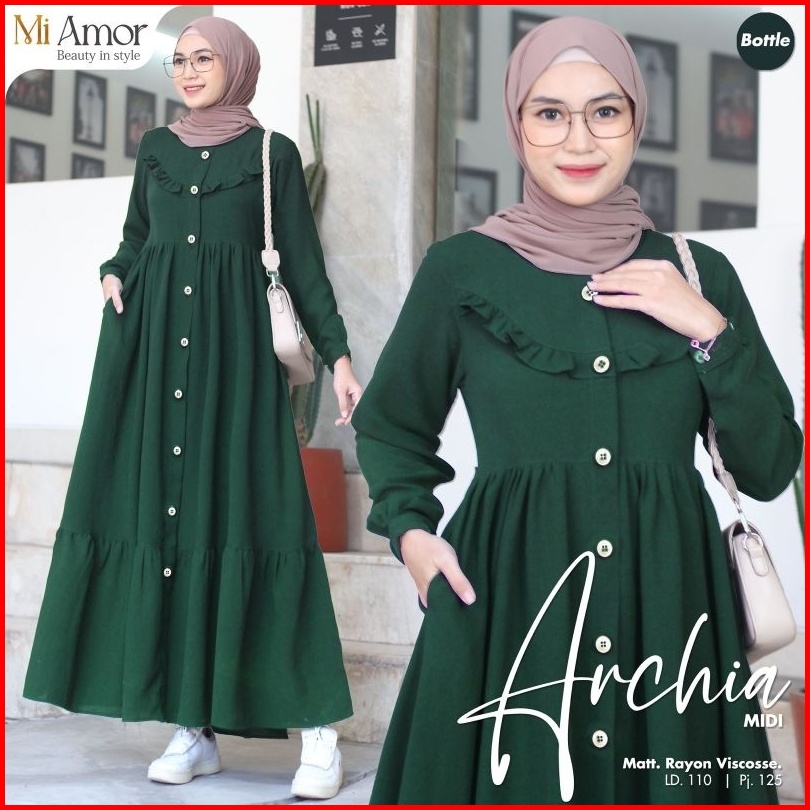 Gamis Maxy Archia Crinkle Airflow Premium Wanita Muslimah Kancing Full Hidup