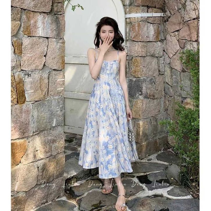 Fashion Wanita Kekinian Aroana Alesha Gaun Tali Ikat Bunga Retro Perancis Dengan Blus Gaun Panjang Pinggang Gaun
