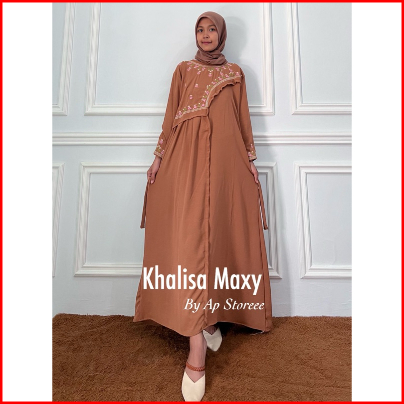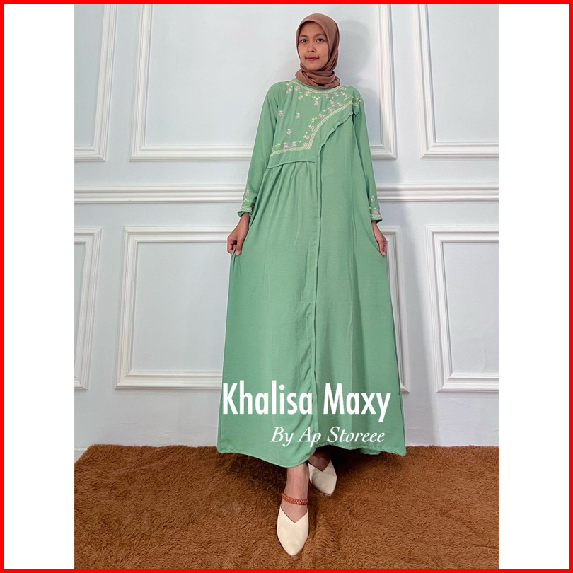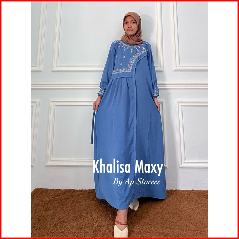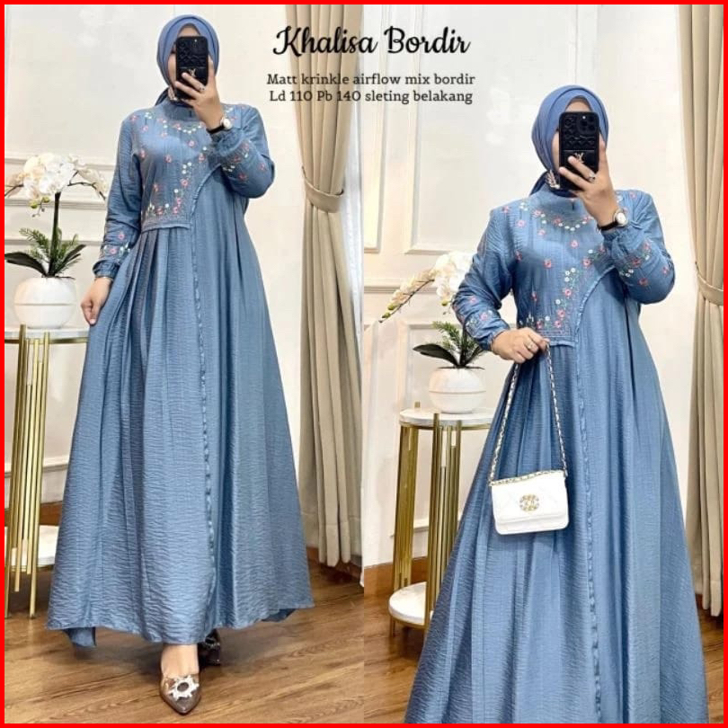 Khalisa Bordir Dress L Ld 110 Xxl Ld 130 Jumbo Maxy Cringkel Airflow Gamis Bordir Asli