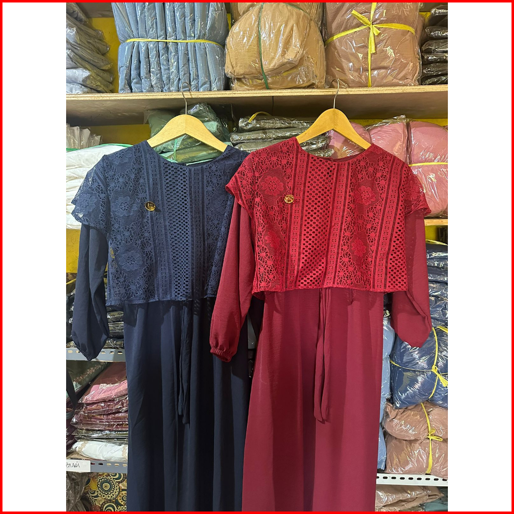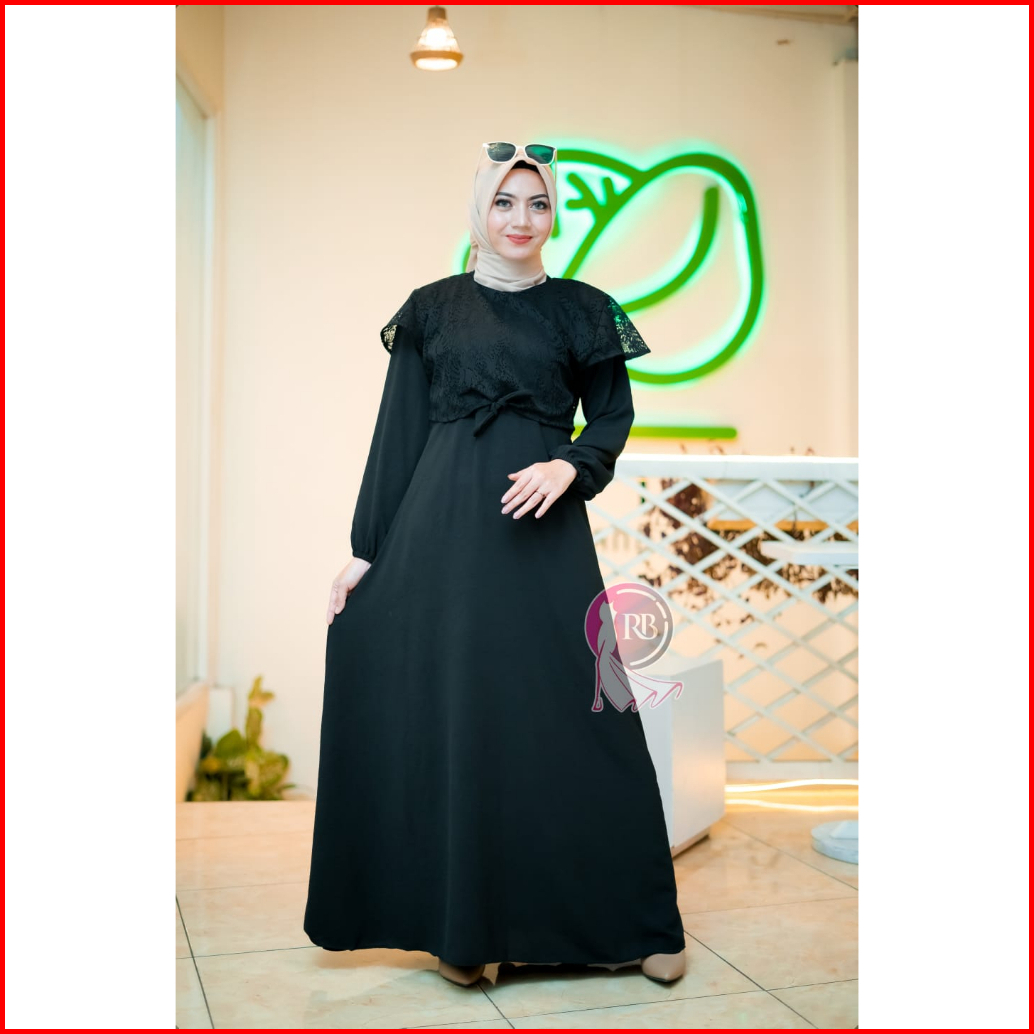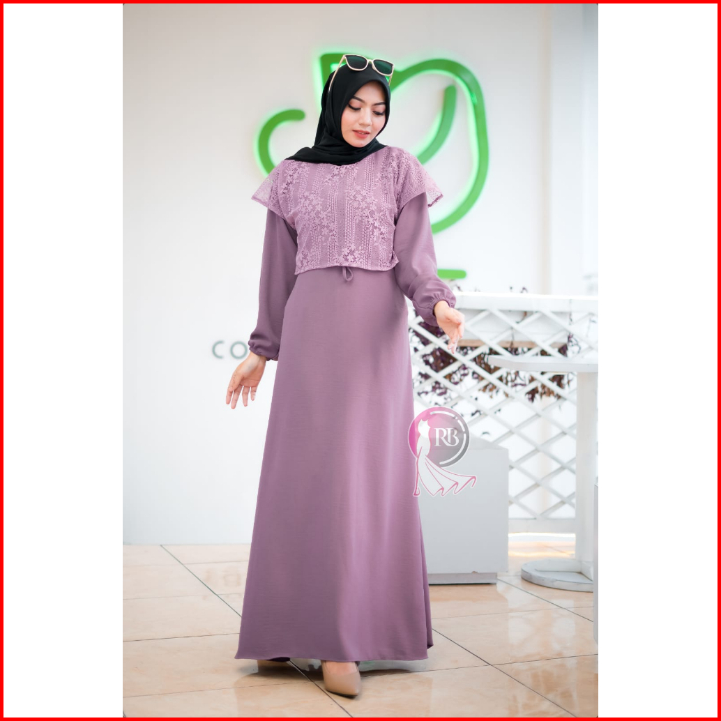 Shanas Maxi Dress Remajs Polos Viral Terbaru Mix Brukat Malika Karet Muslim Gamis Wanita Lebaran Mewah