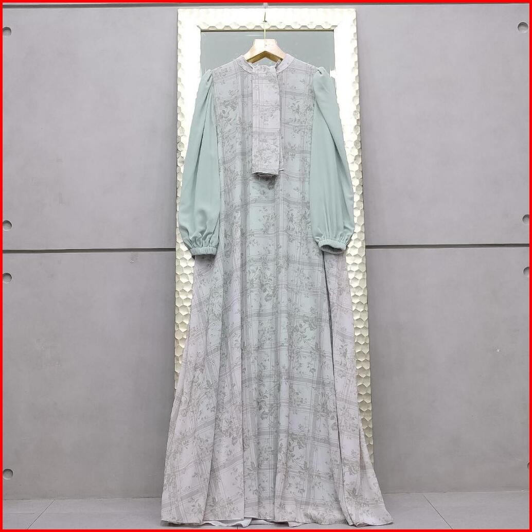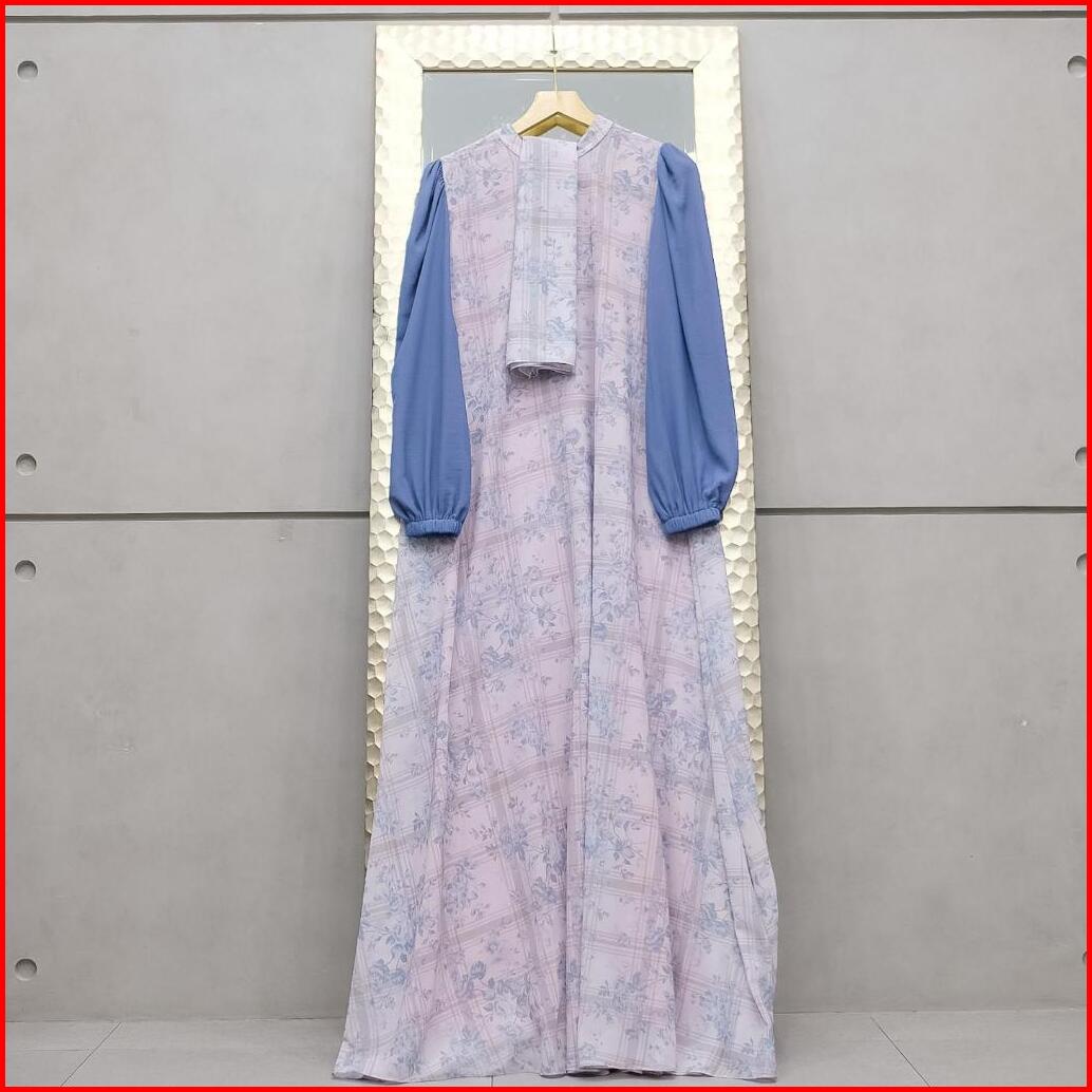 Aisyalina Id Naisha Set Series 35 Pashmina Segiempat Bahan Ceruti Motif Printing Full Furing Gamis Wanita Elegan Tangan