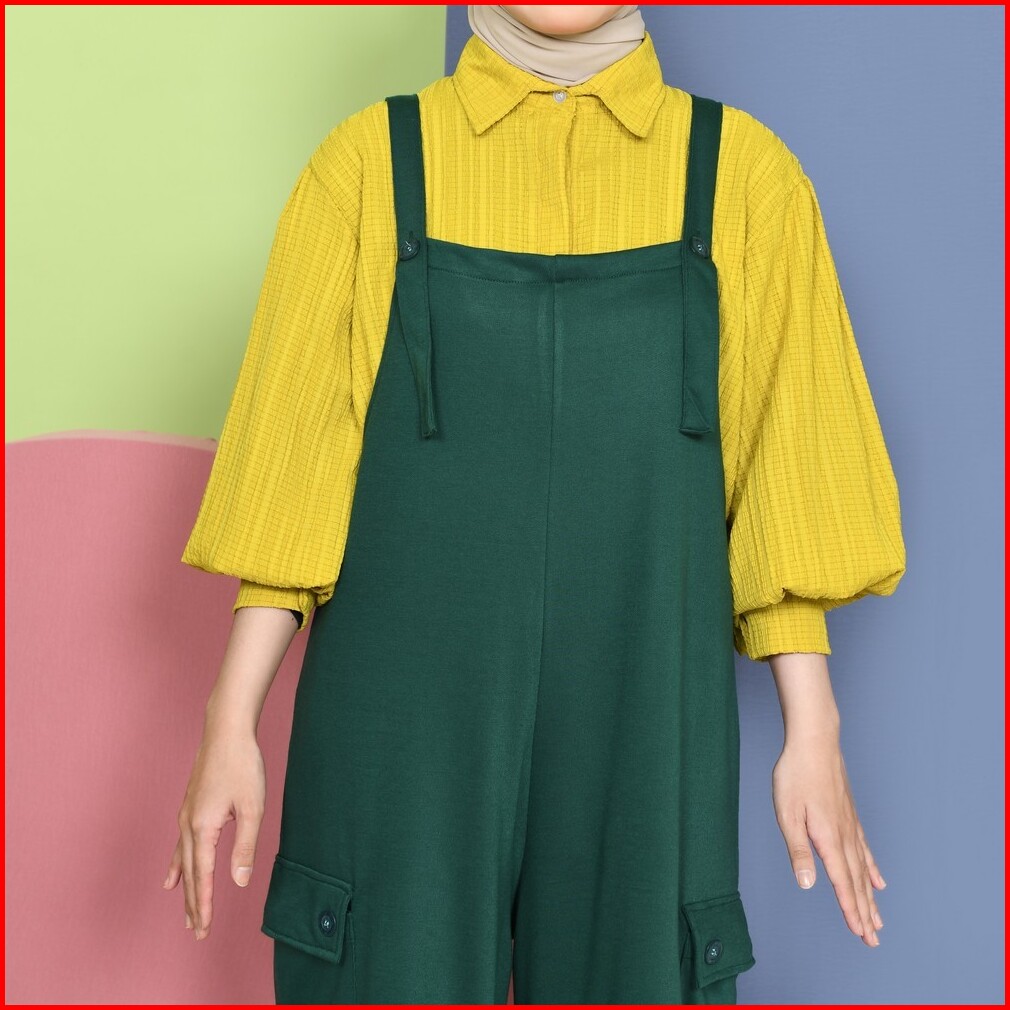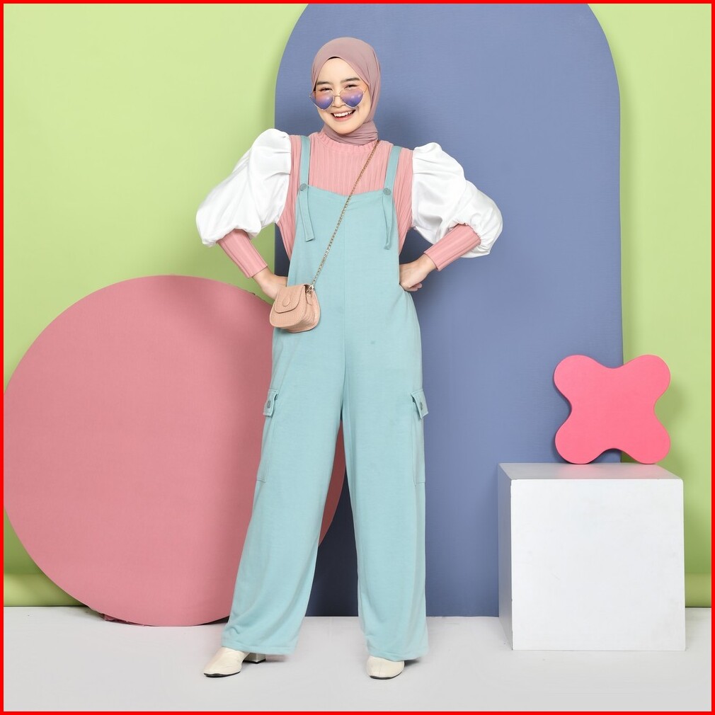 Mybamus Thara Loose Overall Cargo - Jumpsuit Muslim - Baju Kodok Korea - Jumpsuit Kulot Kargo