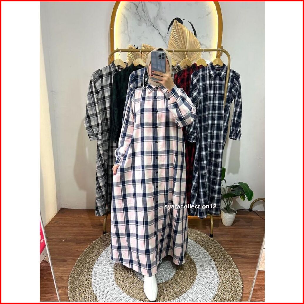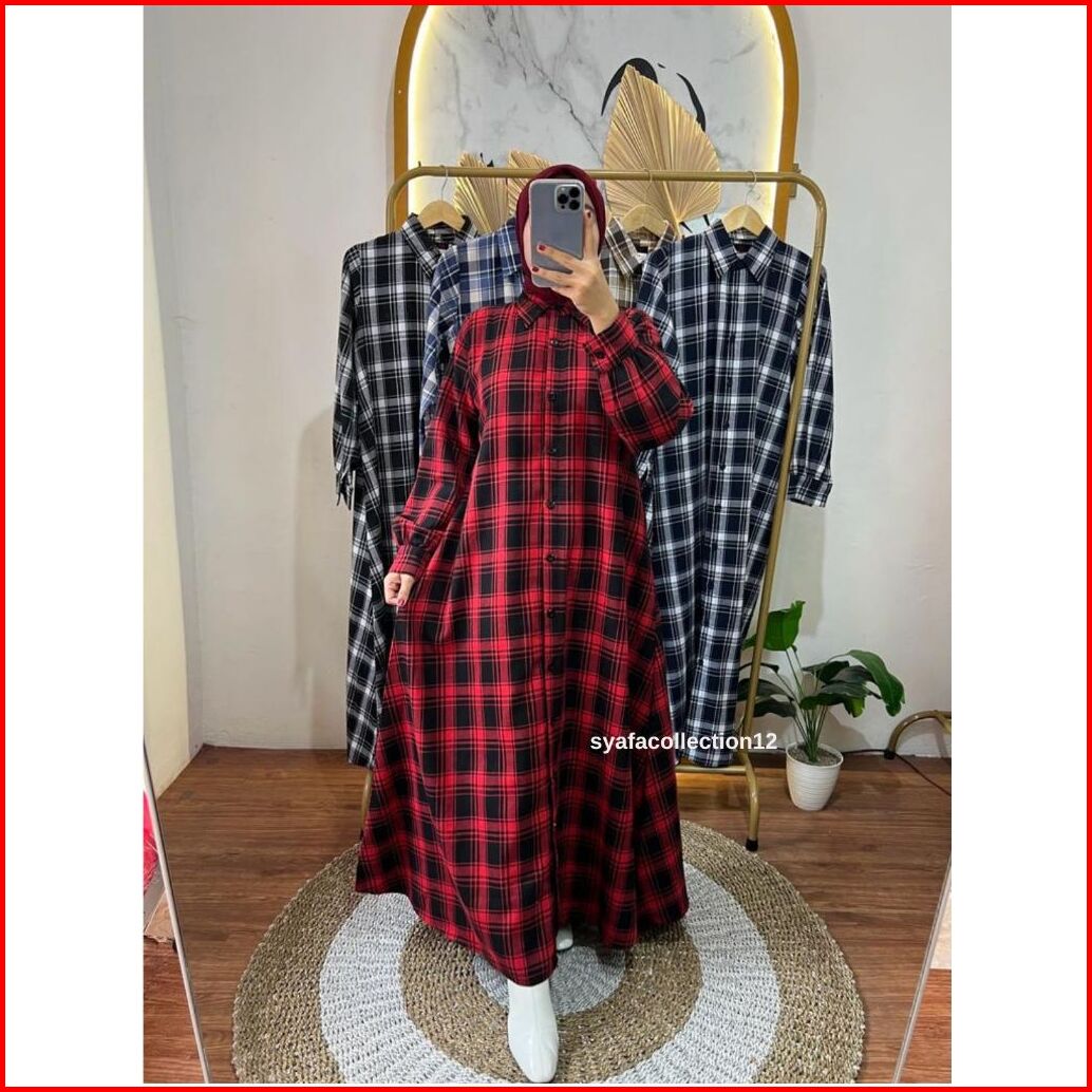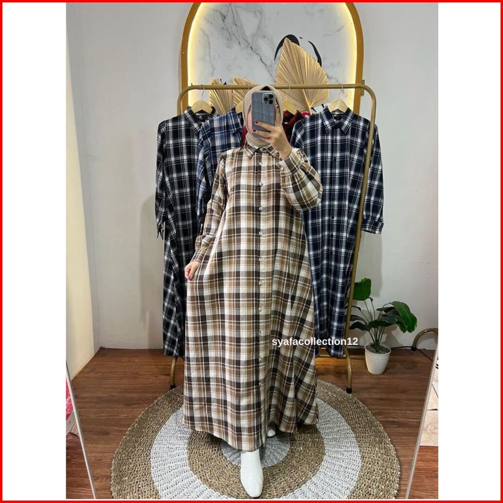 Dress Flanel Kotak Dress Muslimah Terbaru Tangerang