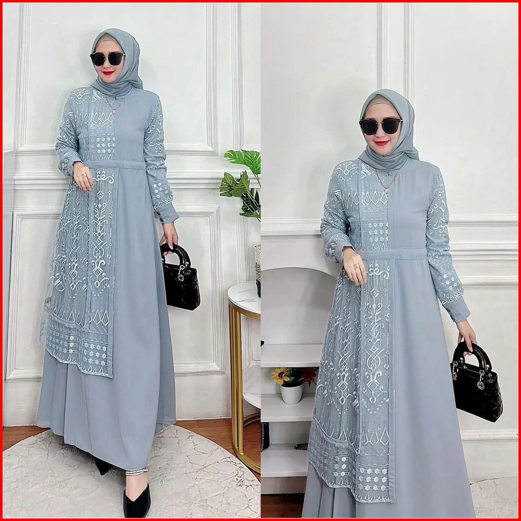 R.a - Rebecca Dress Gamis Muslim Matt Ceruty Babydoll Mix Brukat Full Puring Ootd Lebaran Fashion Terlaris