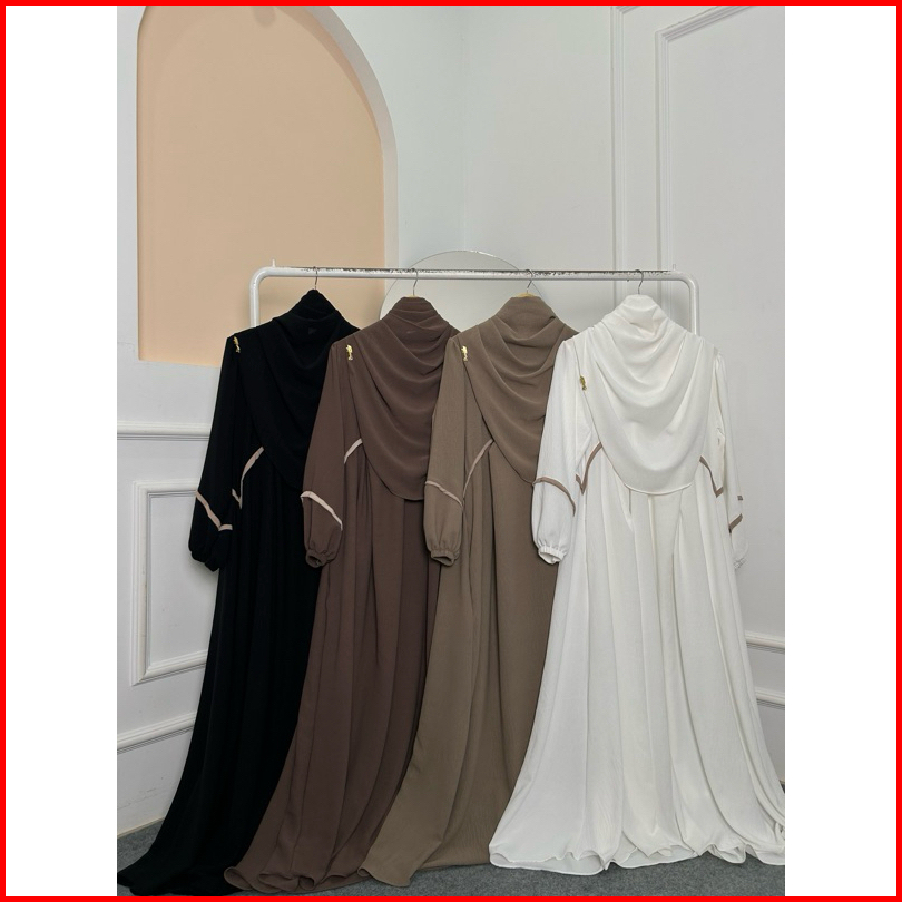 Dfm - Mecca Abaya Set Syari Pasmina Oval Gamis Wanita Bahan Crinkle Airflow