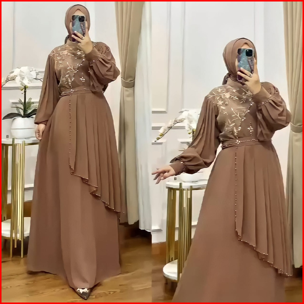 Vallina Outfit - Safira Dress Maxy Pearl Brukat Layering Gamis Cerutty Babydoll Pesta Kondangan Lebaran Premium