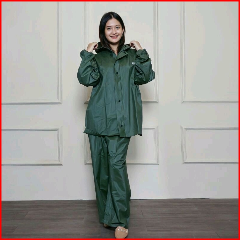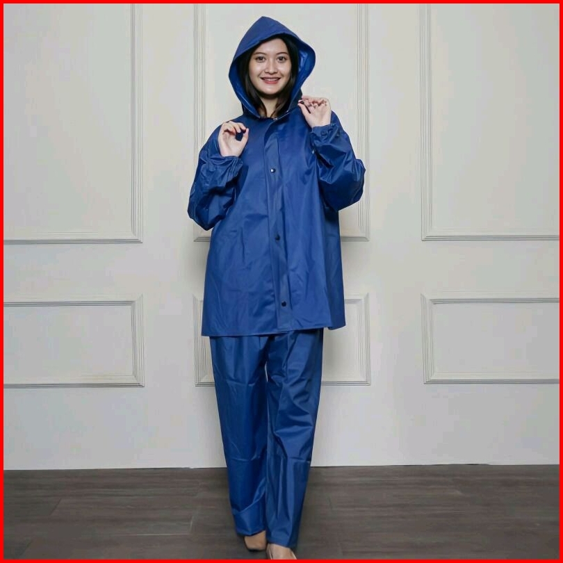 Akula Jas Hujan Pria Wanita Bahan Pvc Setelan Baju Dan Celana