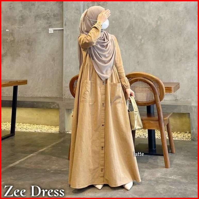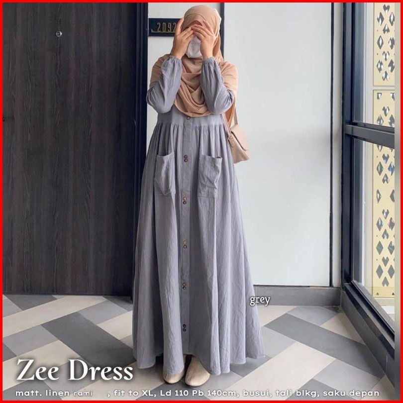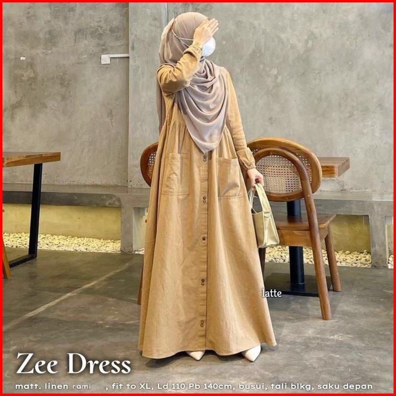 Vallina Outfit - Zee Maxy Gamis Linen Rami Modern Dress Muslim Wanita Remaja Premium M Fit Xl