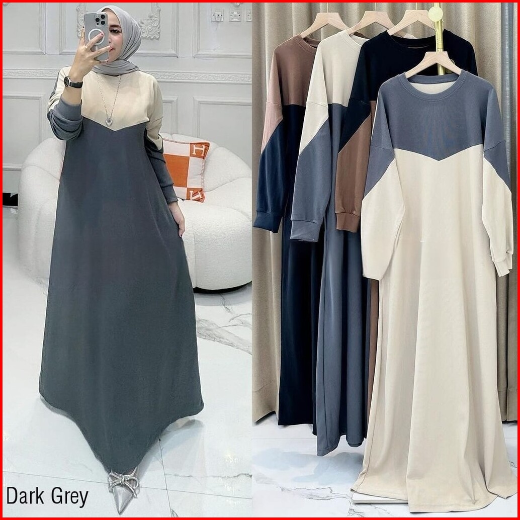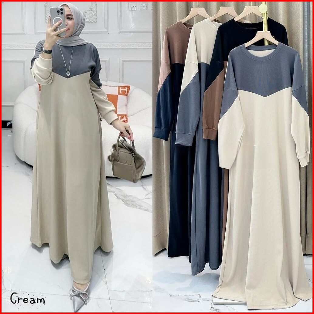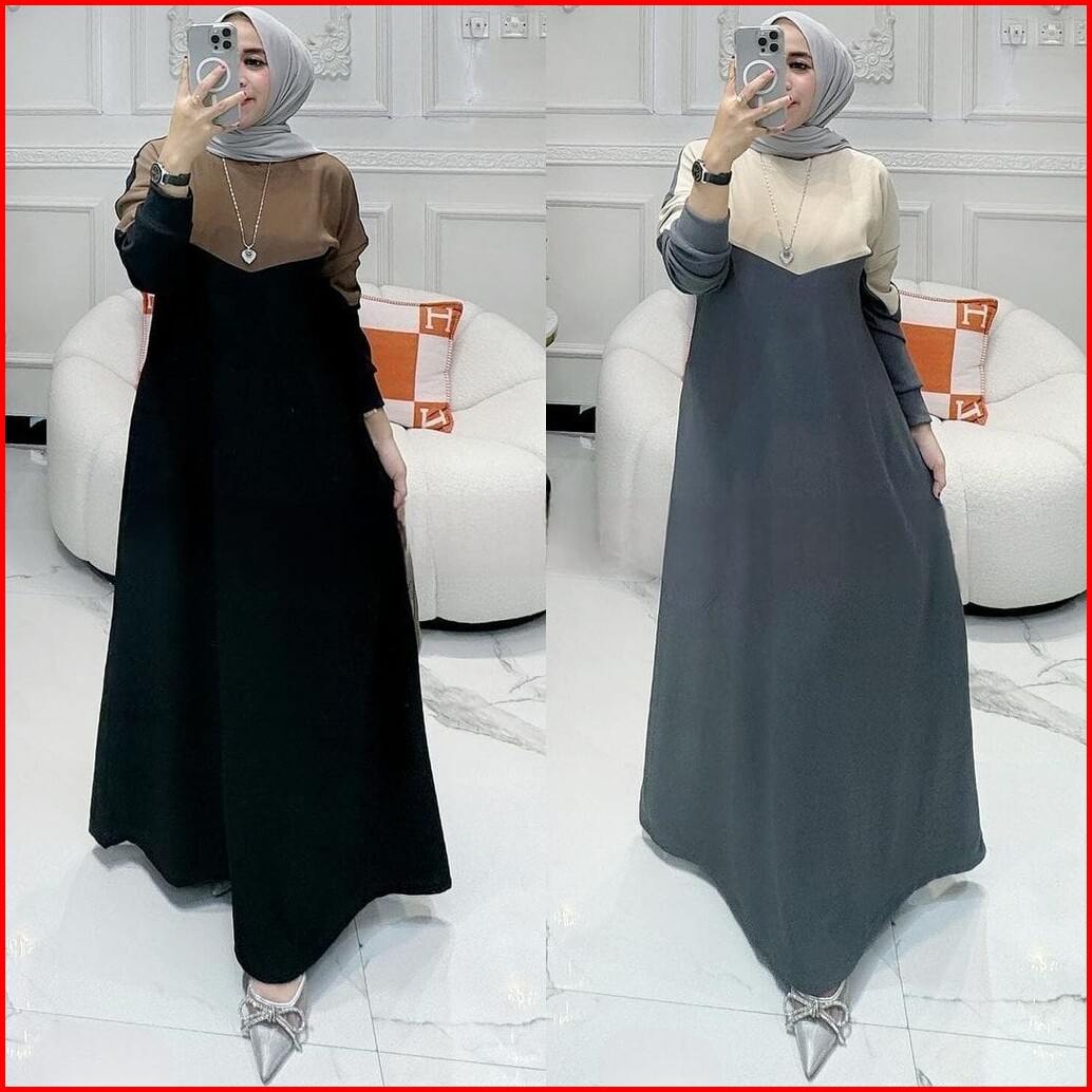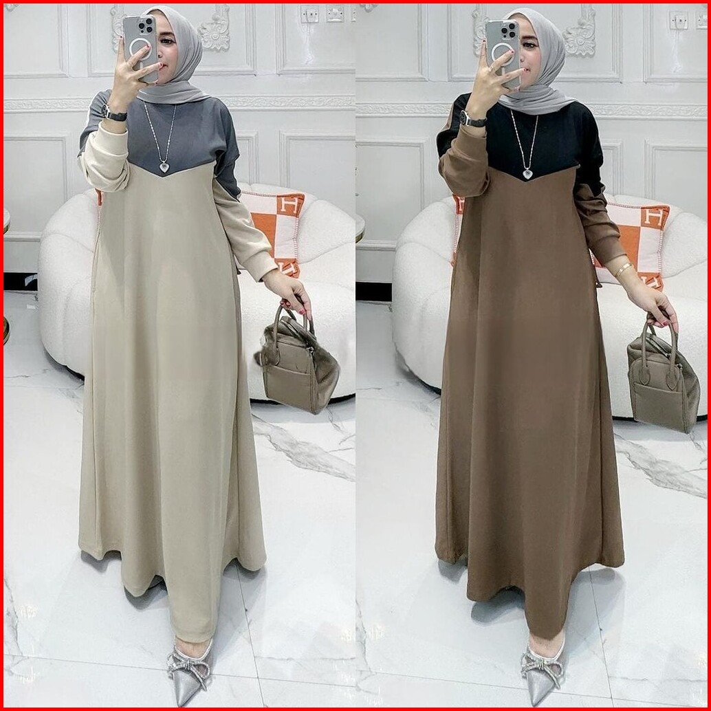 Vallina Outfit - Wilona Knit Maxy Dress Two Toned Caramel Knitt Premium Gamis Wanita Muslim Daily Lebaran Modern M - Xl