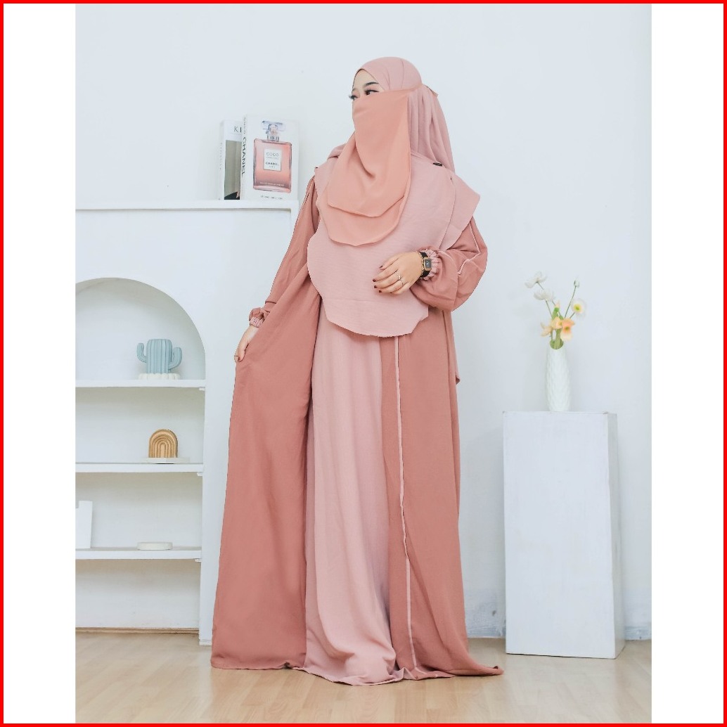 Suci Abaya Dua Warna Maxi Syari Cringkle Airflow Wanita Crinkle Muslim