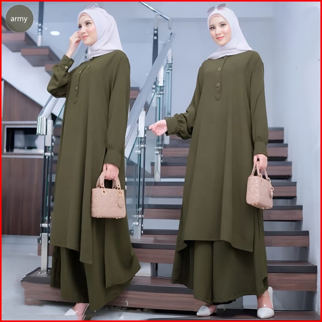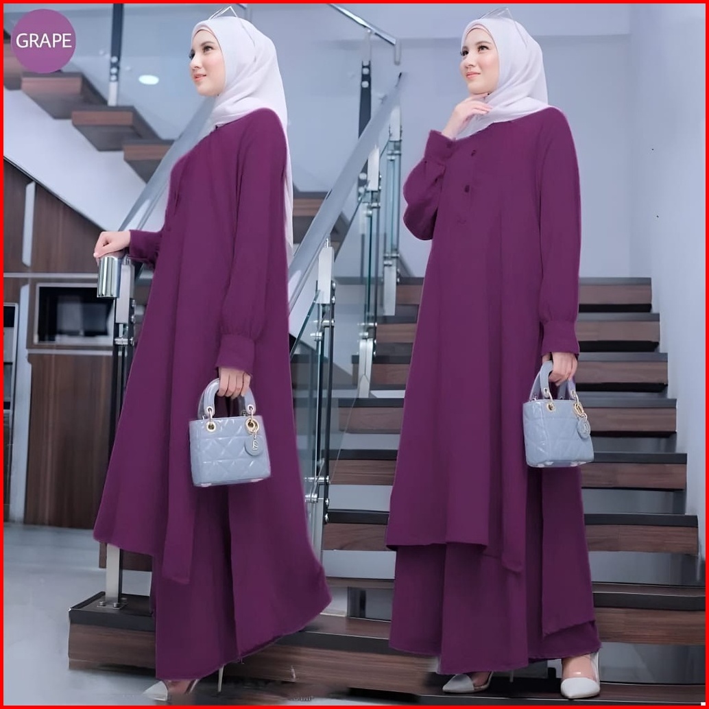Vallina Outfit - Aira Set 2in1 Setelan Muslim Wanita Celana Polos Lebaran Kondangan Premium Crinkle Jumbo M - Xl
