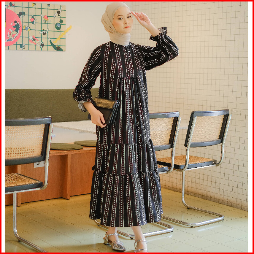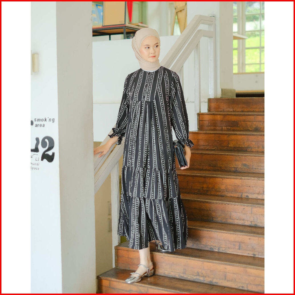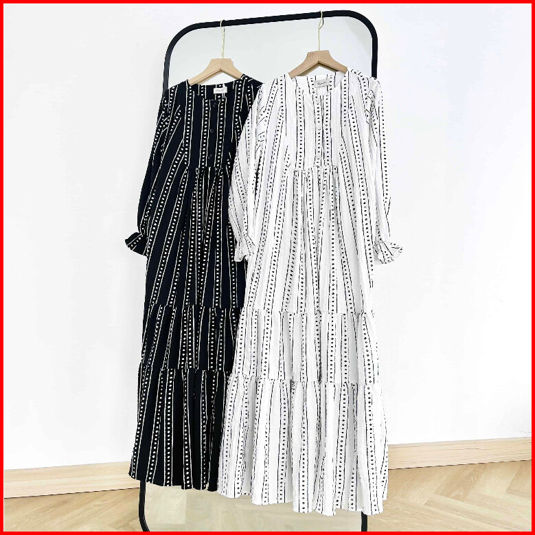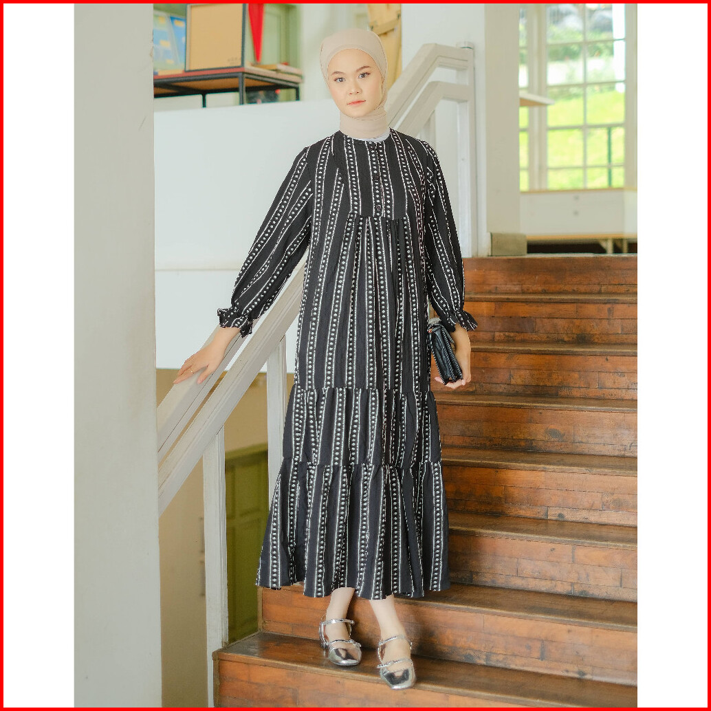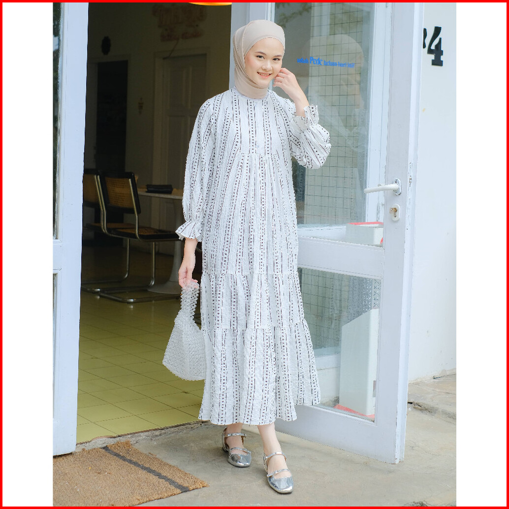 Mayoutfit Velyn Mididress Dress Gamis Crinkle Layer Motif Print