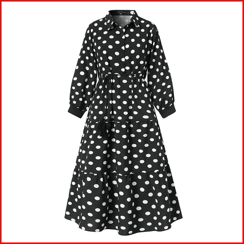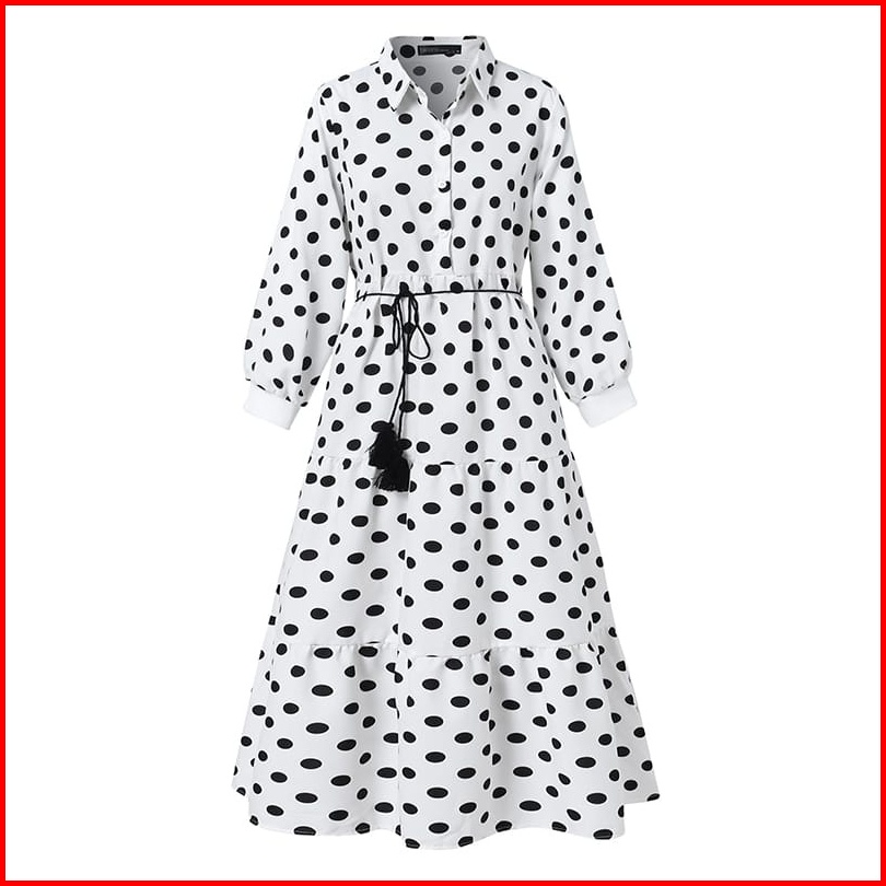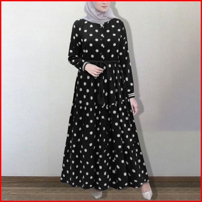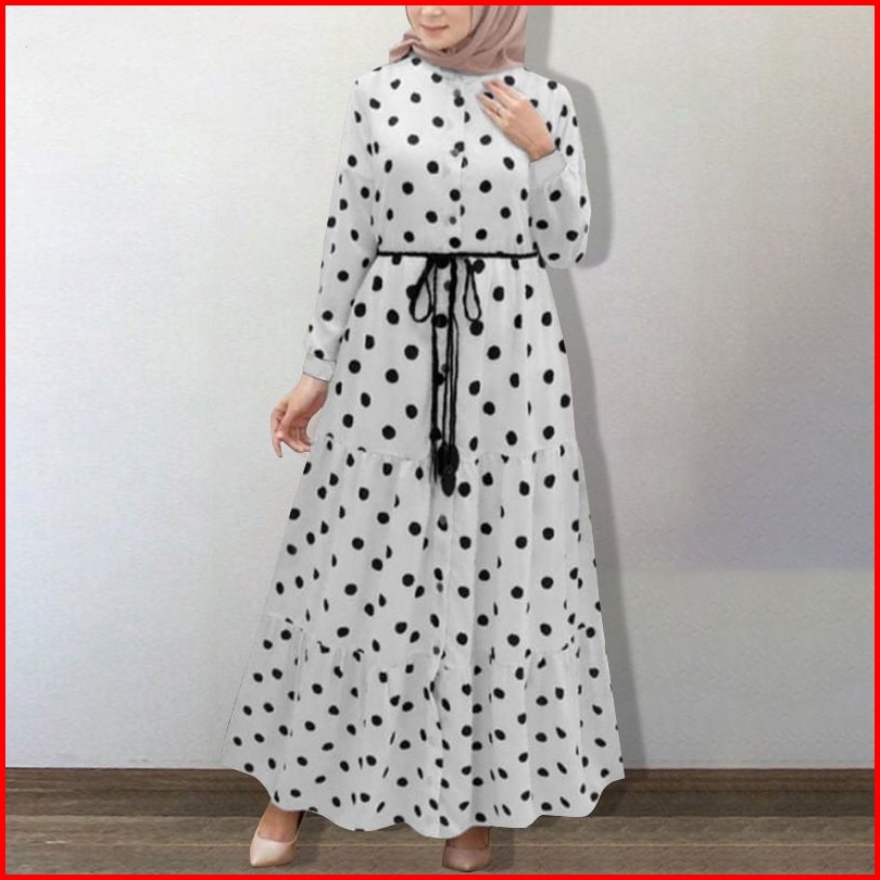 Vallina Gamis Modern Monalisa Polka Melia Dress Maxi Muslim Wanita Premium