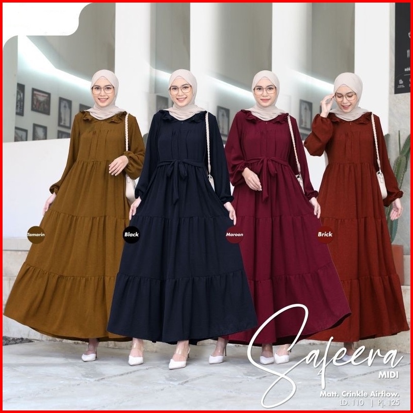 Safeera Midi Dress Bahan Crinkle Airflow Premium