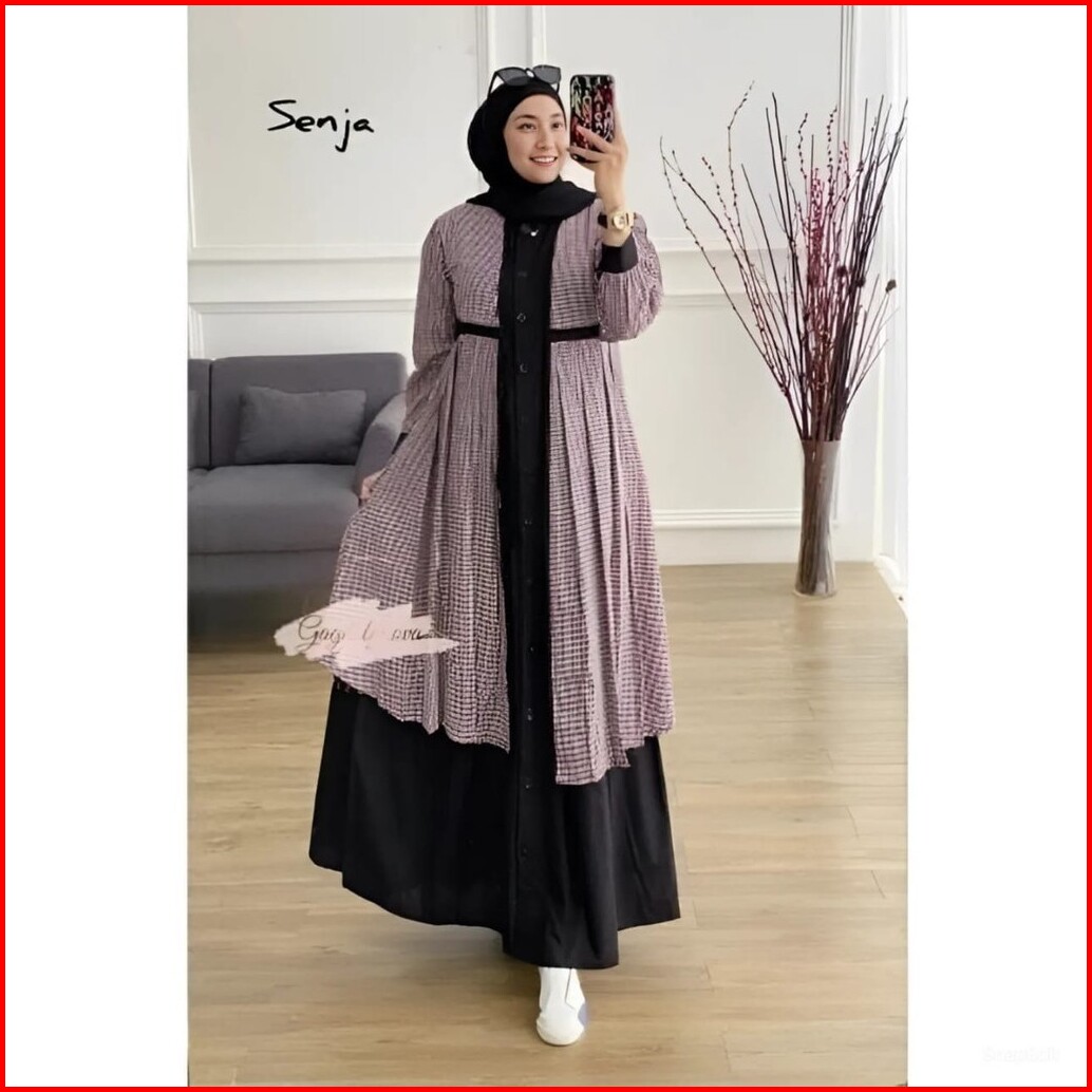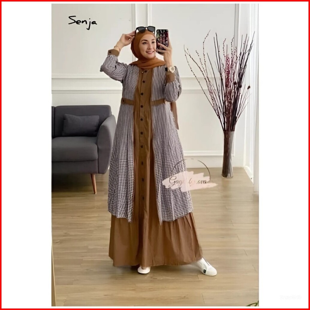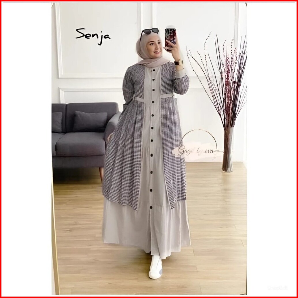 Vallina Outfit - Senja Dress Gamis Muslim Wanita Matt Rami Mix Katun 2in1 Busui Ootd Casual Daily Premium
