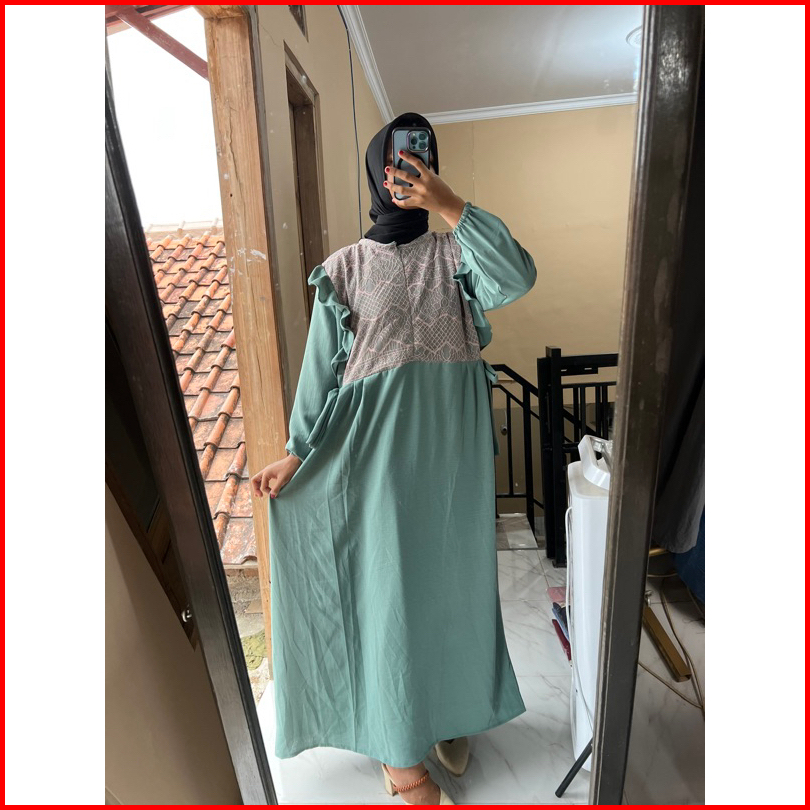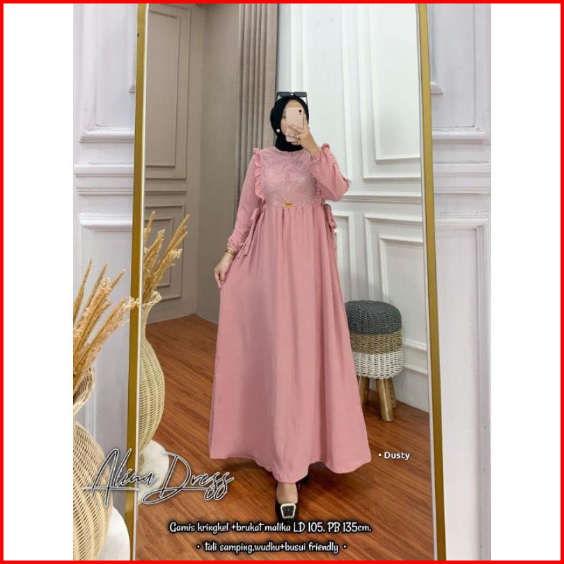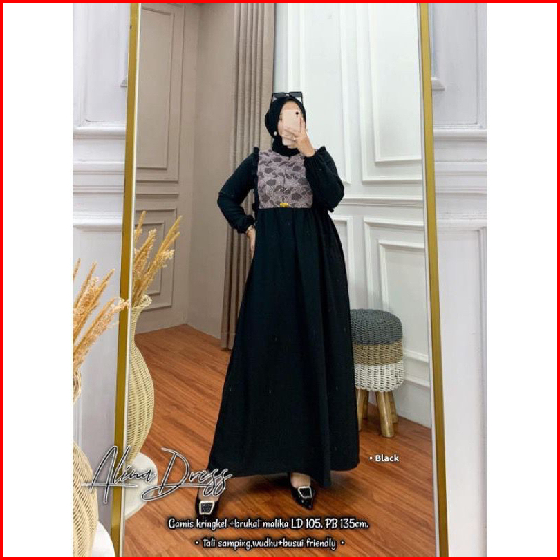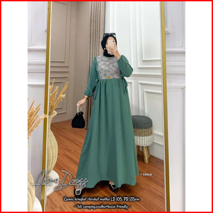 Alina Dress Maxy Burkat Cringkel Airflow Gamis Pesta Burkat Random