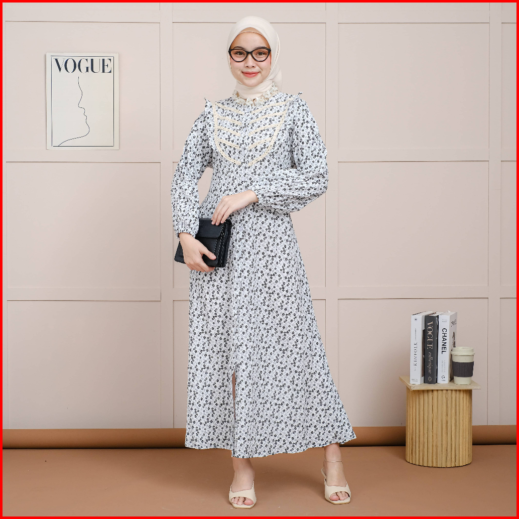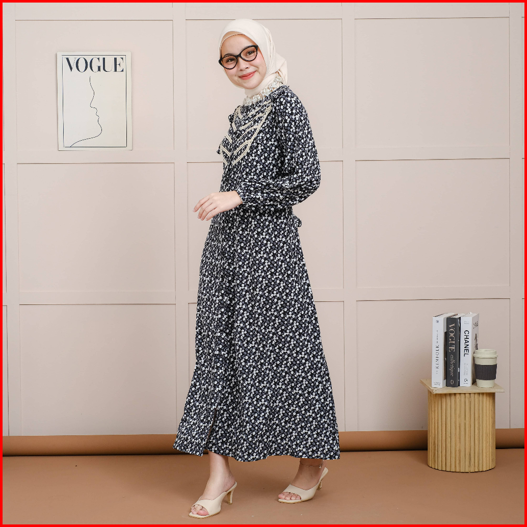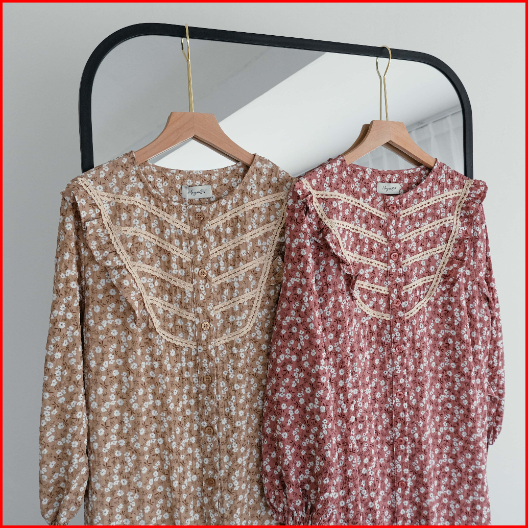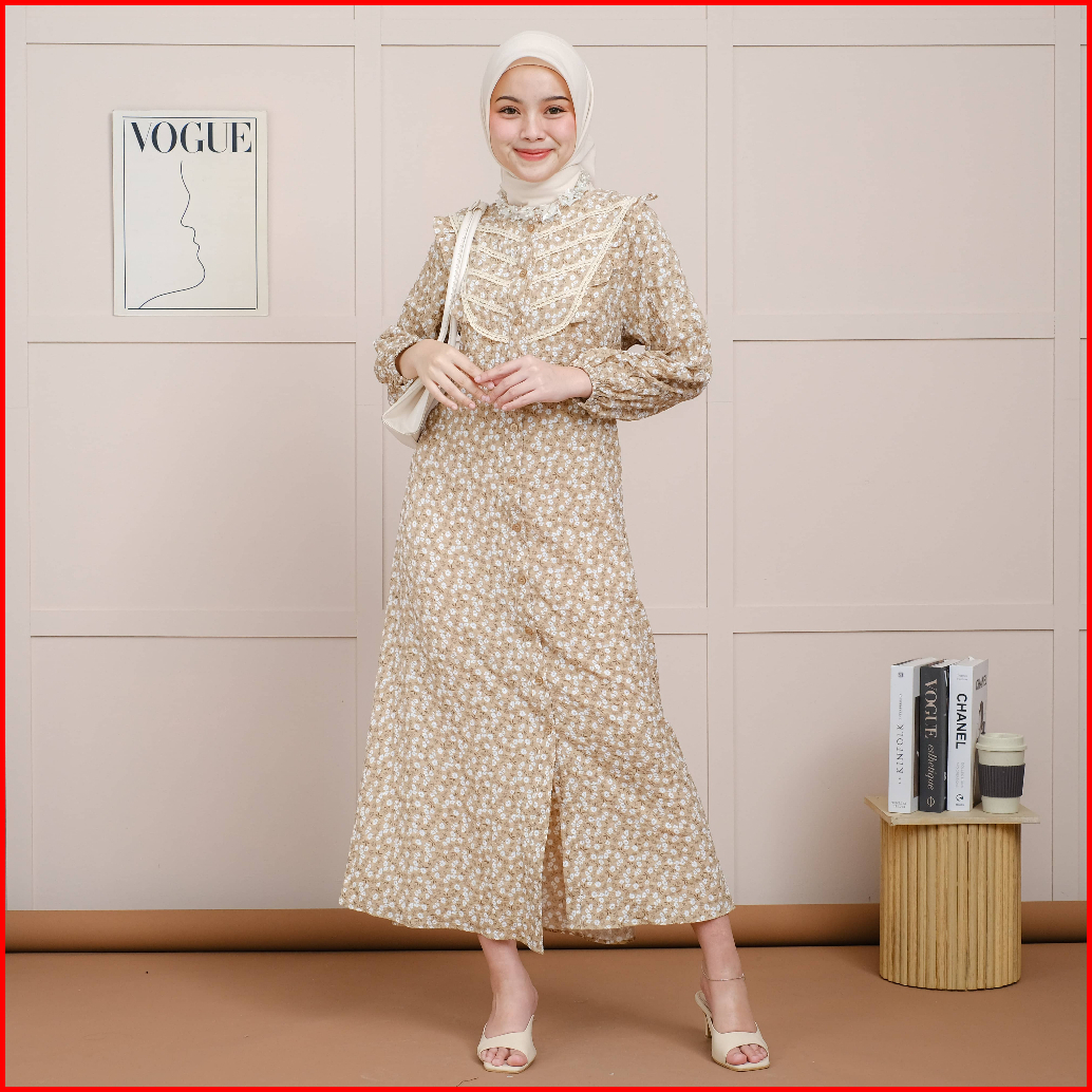 Mayoutfit Delynda Mididress Dress Wanita Motif Bunga Full Kancing