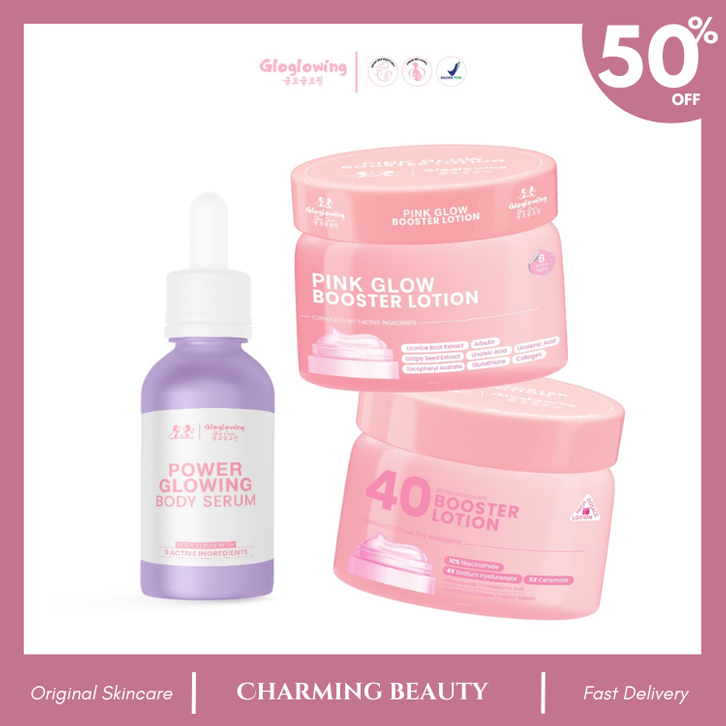 [Mall] GLOGLOWING OFFICIAL Paket Body Care 3 item Lotion Siang Malam Body Serum 40 Active Pink Glow Power Glowing