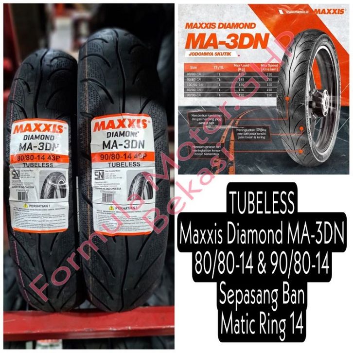 FREE ONGKIR BAN 80/80-14 & 90/80-14 Ban Maxxis MA-3DN Tubeless - Sepasang Ban Motor Ring 14