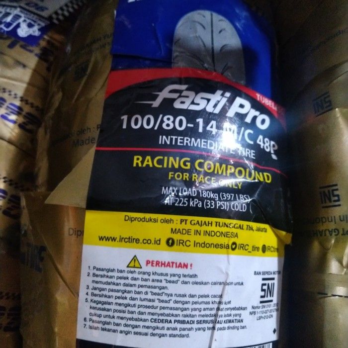 BAN MOTOR MATIK IRC FASTI PRO UKURAN 100/80-14 RING 14 SOFT COMPOUND