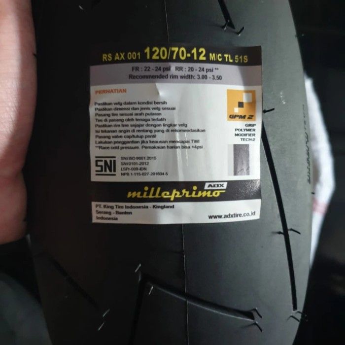 BAN MOTOR VESPA SCOOPY MERK ADX MILLEPRIMO UK 120/70-12 SOFT COMPOUND