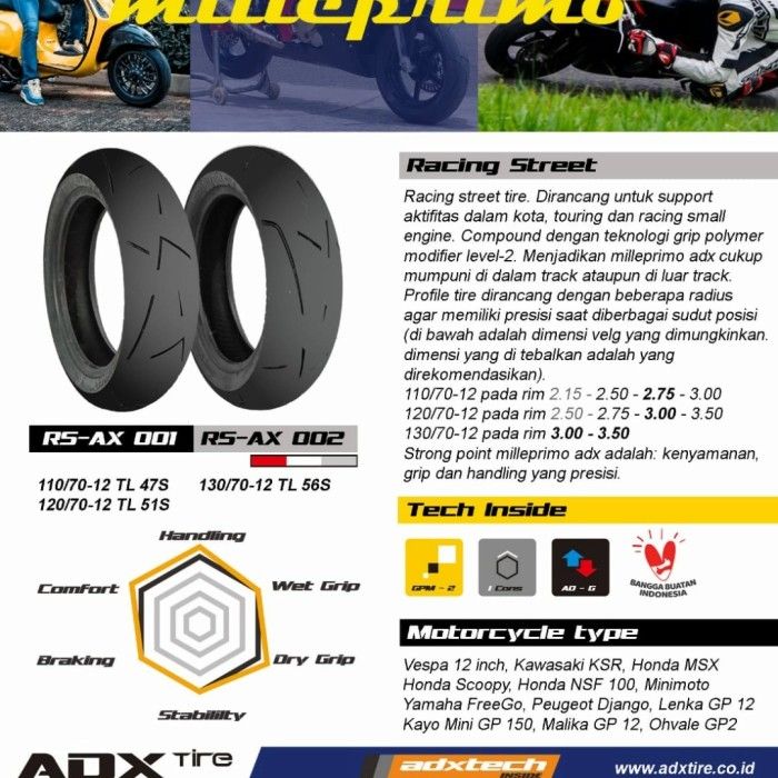 BAN MOTOR VESPA SCOOPY MERK ADX MILLEPRIMO UK 110/70-12 SOFT COMPOUND