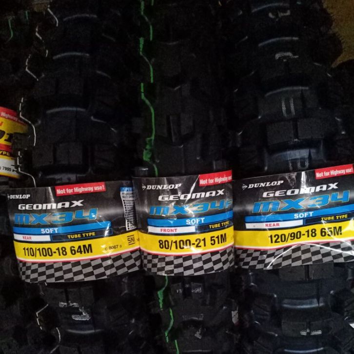 [Star] PAKET BAN MOTOR CROSS BAN TRAIL ADVENTURE CROSS DUNLOP GEOMAX MX34 80/100-21 & 110/100-18 TUBETYPE - BAN TRAIL