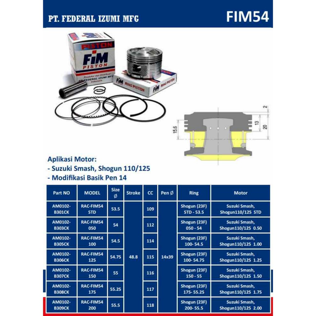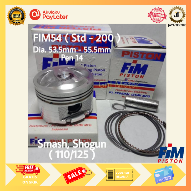 FREE ONGKIR Piston kit FIM Suzuki Shogun - Smash 110 / 125 cc Dia. 53.5 54 54.5 54.75 55 55.5 mm Pen Pin 14