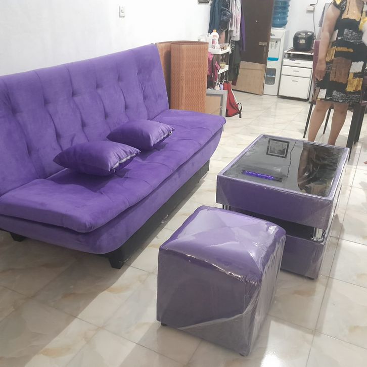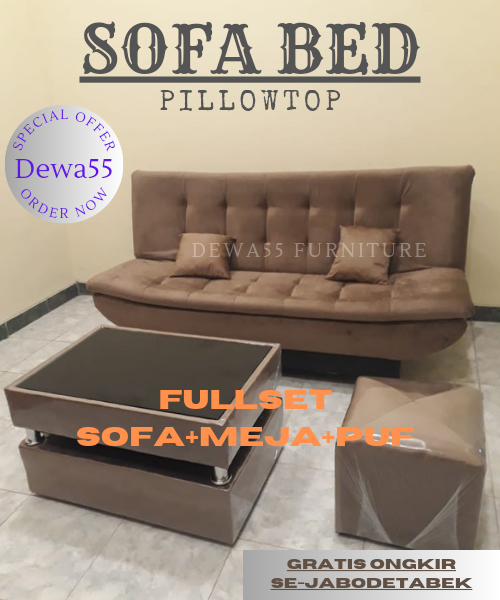 Sofabed Pillow top | sofa + meja + puff/ kursi kecil | sofa bed | sofa ruang tamu
