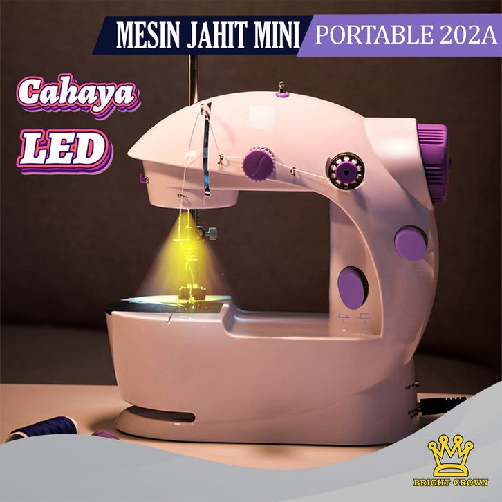 Mesin Jahit Mini Portable Bright Crown Terbaru 202A Mesin Jahit Multifungsi + Lampu Malam Rapi&Kokoh