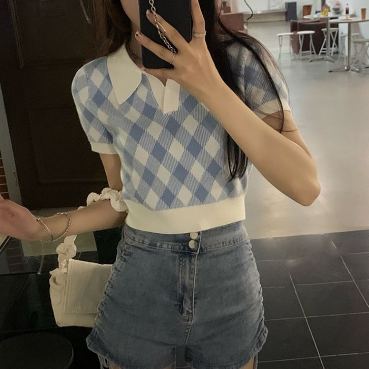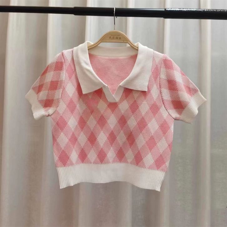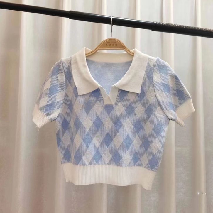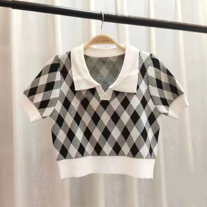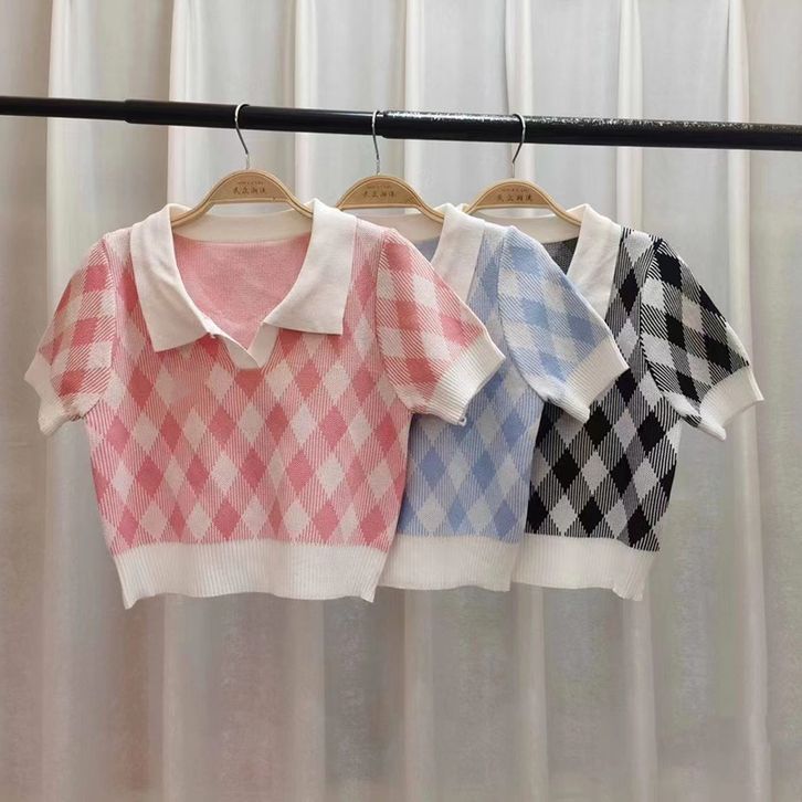 Atasan Wanita Kekinian Crop Top Gaya Korea Kaos Wanita Dengan Bahan Rajut Atasan Kerah Baju Wanita