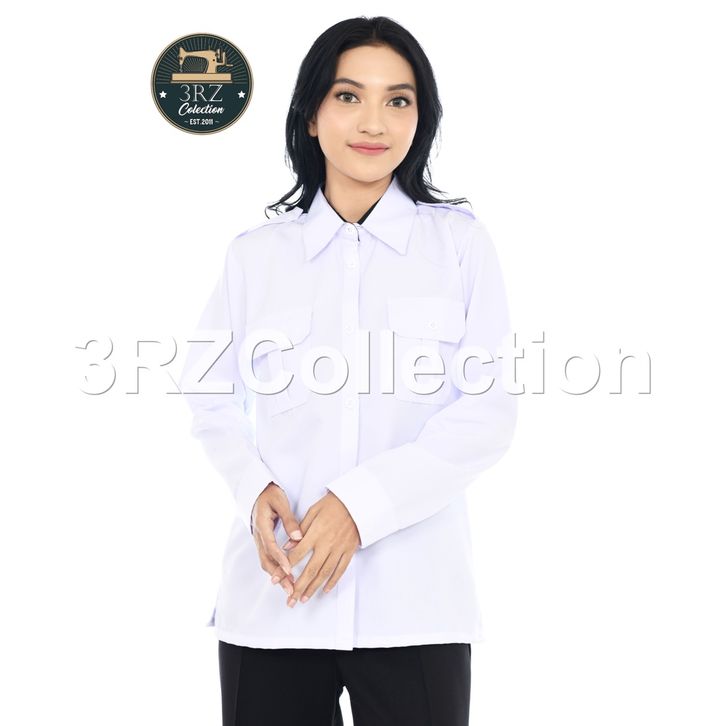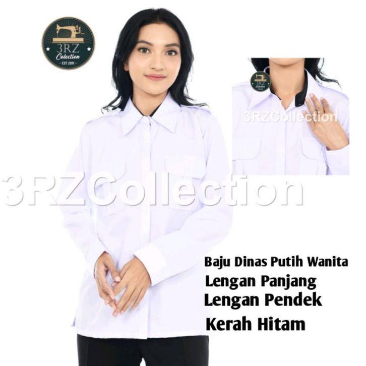 Baju Seragam Dinas Putih Wanita Seragam Pns Putih Wanita Baju Pdh Putih Wanita Kerah Hitam Terbaru