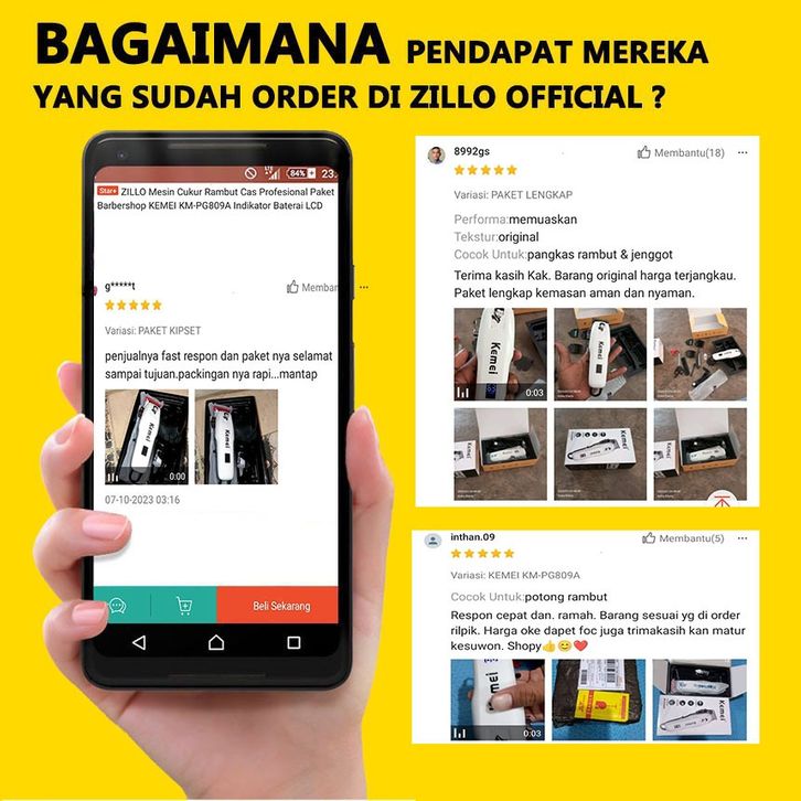 ZILLO Mesin Cukur Rambut Cas Profesional Paket Barbershop KEMEI KM-PG809A Indikator Baterai LCD Digital ORIGINAL