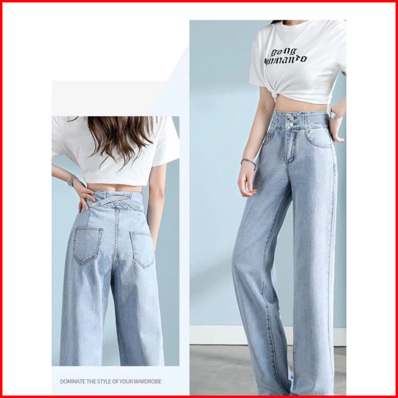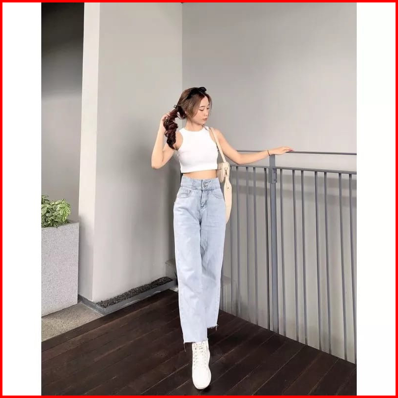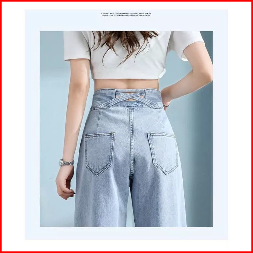 Celana Panjang Highwaist Kulot Jeans Wanita J23 Double Button 2 Kancing Model Belakang Silang Voll 2