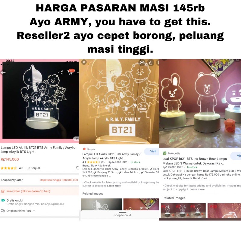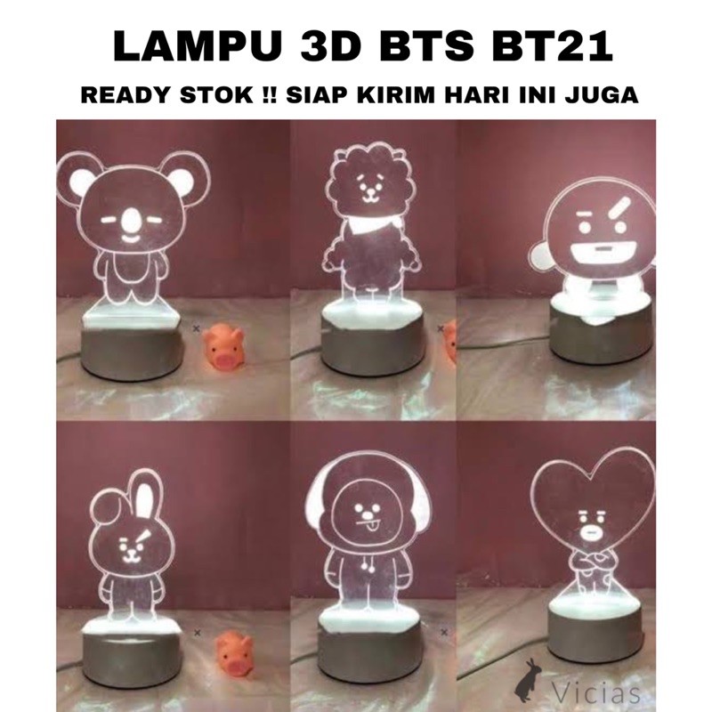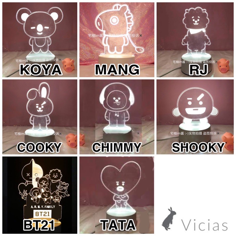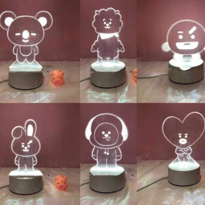 LAMPU 3D BT21 ARMY KPOP / LAMPU ACRYLIC KACA TATA CHIMMY COOKY RJ KOYA