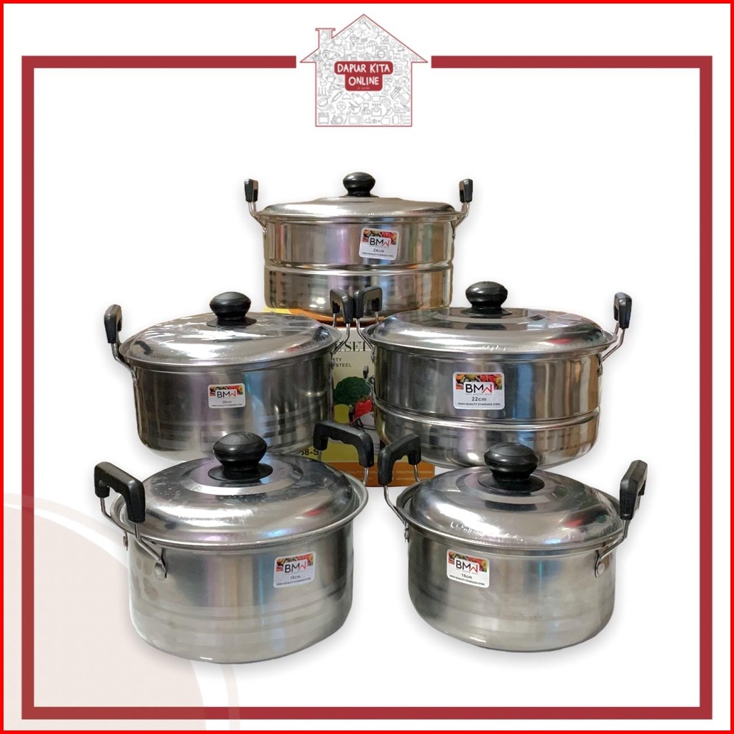 Panci Set 5 In 1 Steamer Tutup Stainless Panci Set Highpot Stainless 5in1 Panci Ndo Steamer Ss 168-s Panci Bmw Set 5 In