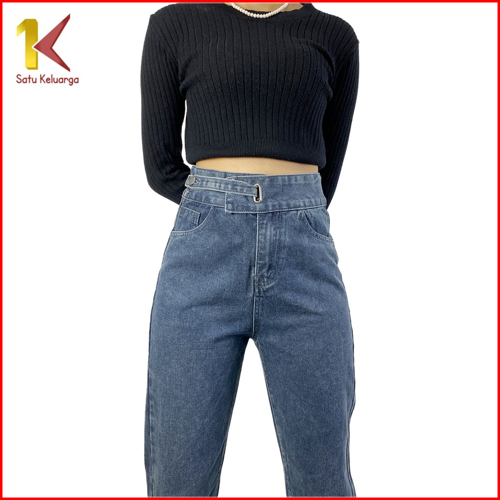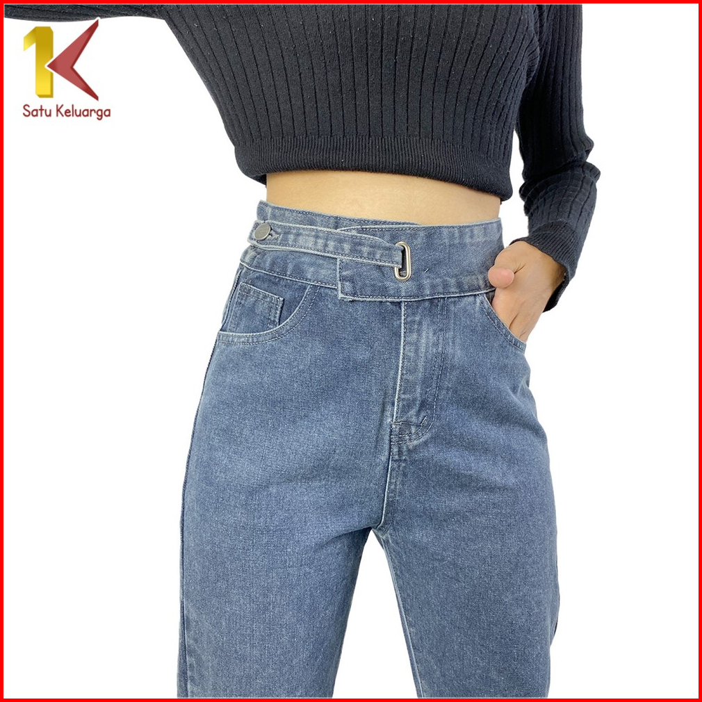 1k Celana Jeans Polos Celana Panjang Jeans Wanita Atas Perut P510 Celana Boyfriend Highwaist Fashion