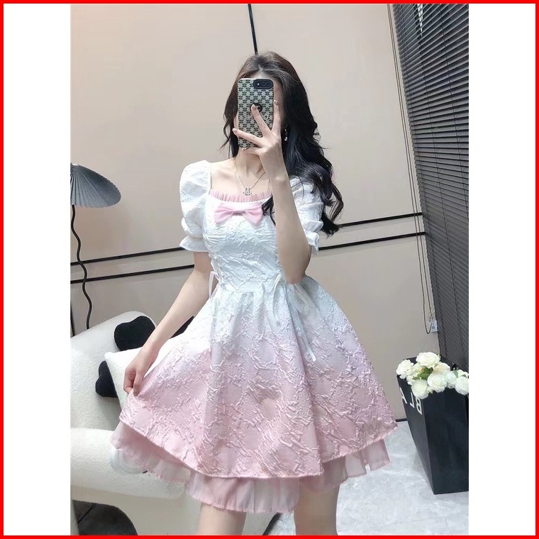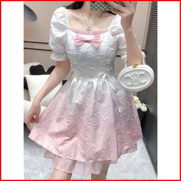 Mini Baby Doll Babydoll Gradasi Warna Putih Pink Dress - Dress Casual Kasual Dress Import Impor Korean Dress Korea Dress