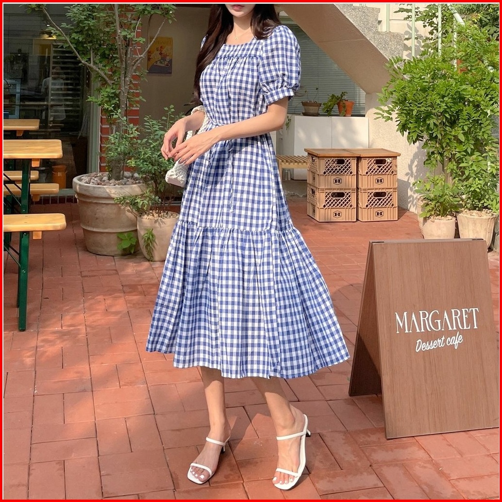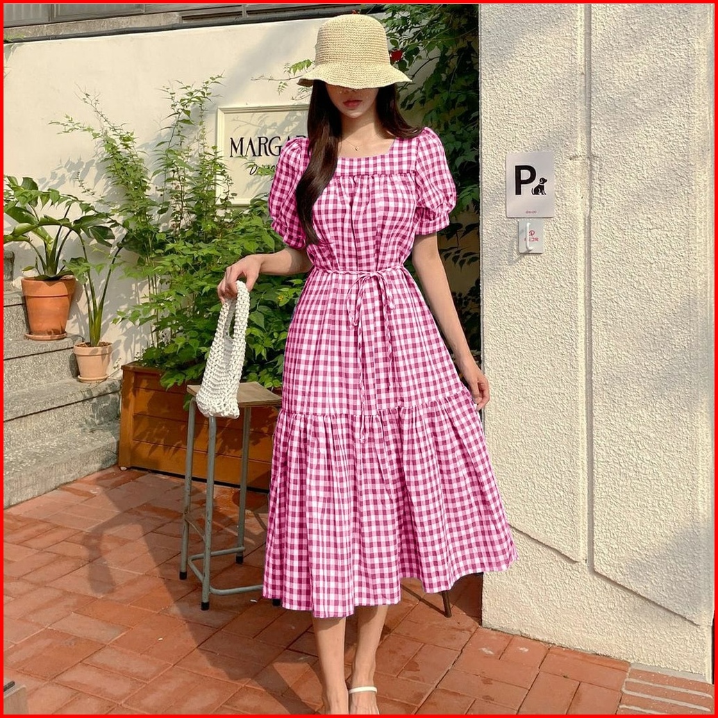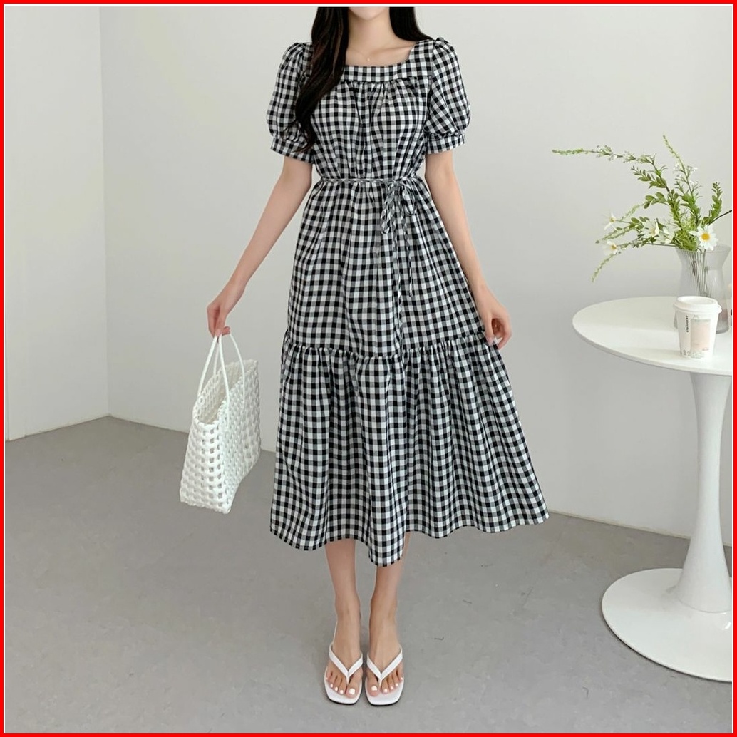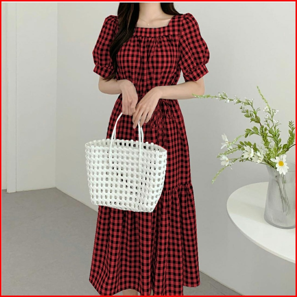 Fwg - Dress Samola Dress Wanita Korea Dress Kotak-kotak Dress Baju Dress Wanita Terbaru