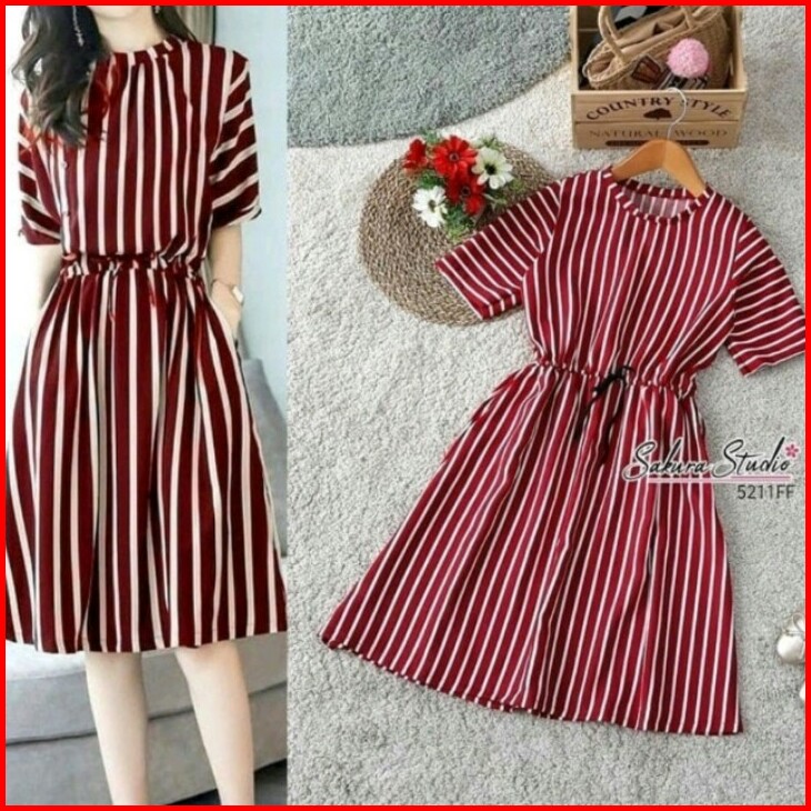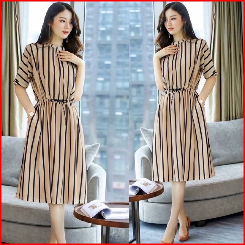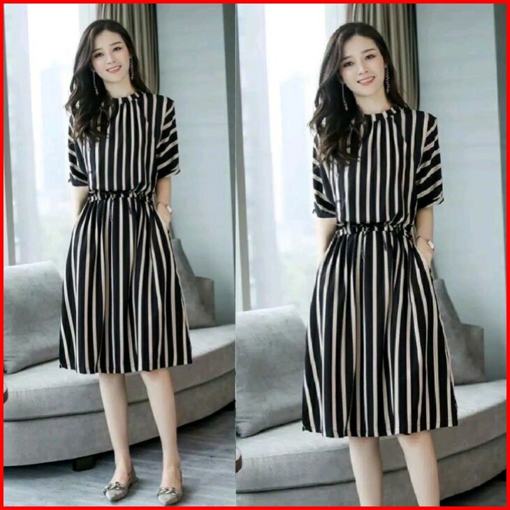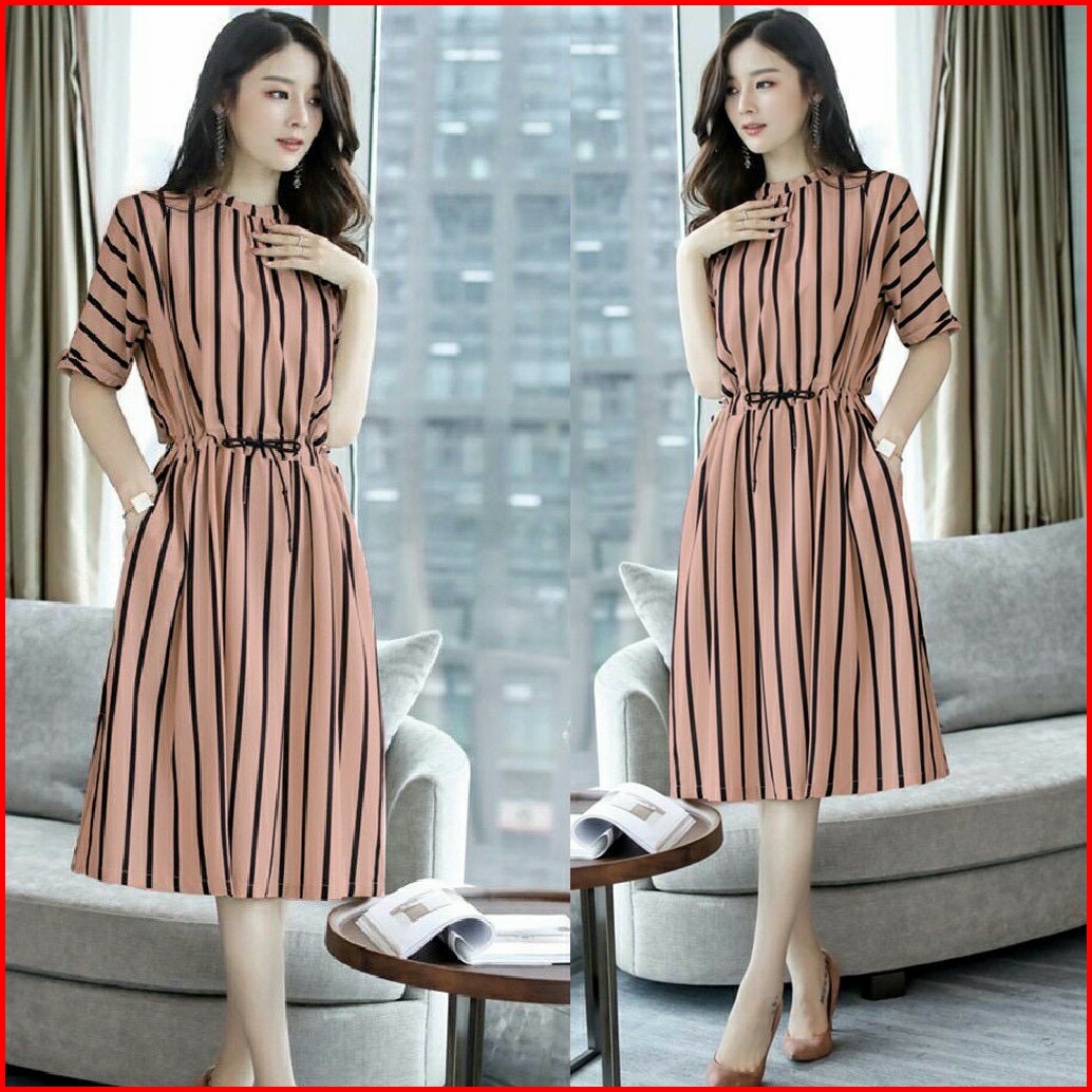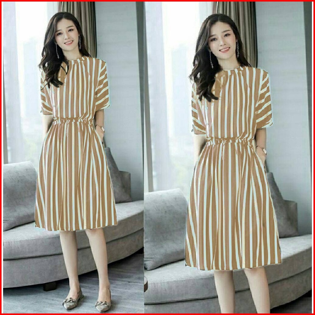 Fwg - Dress Minori Dress Wanita Terbaru Dress Korea Wanita Dress Wanita Salur Dress