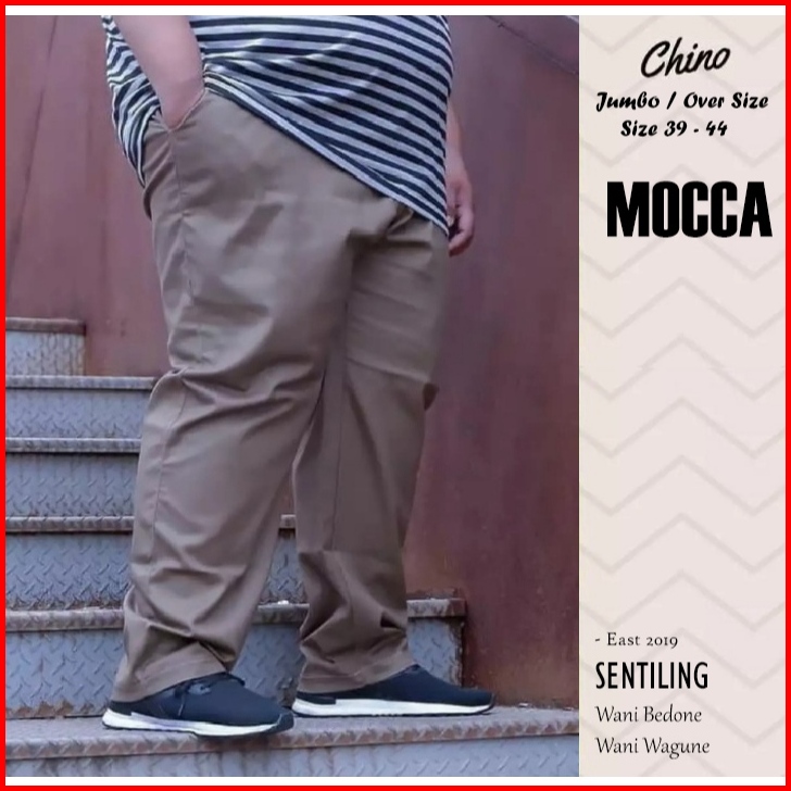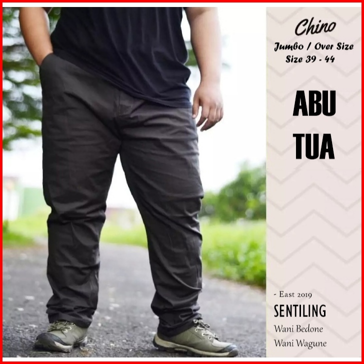 Celana Panjang Pria Chino Big Size Super Jumbo Bahan Cino Melar Paha Longgar Muat Bb 100kg Plus