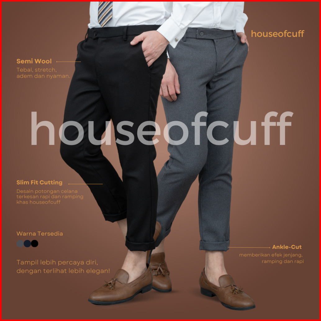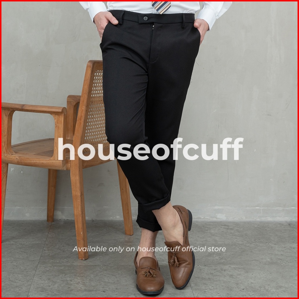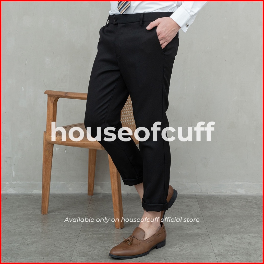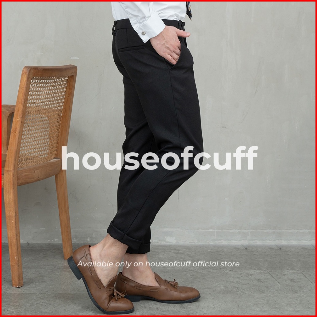 Houseofcuff Celana Bahan Kerja Ankle Button Slim Fit Hitam