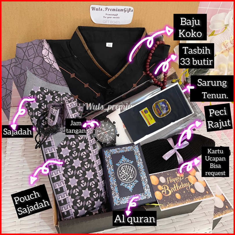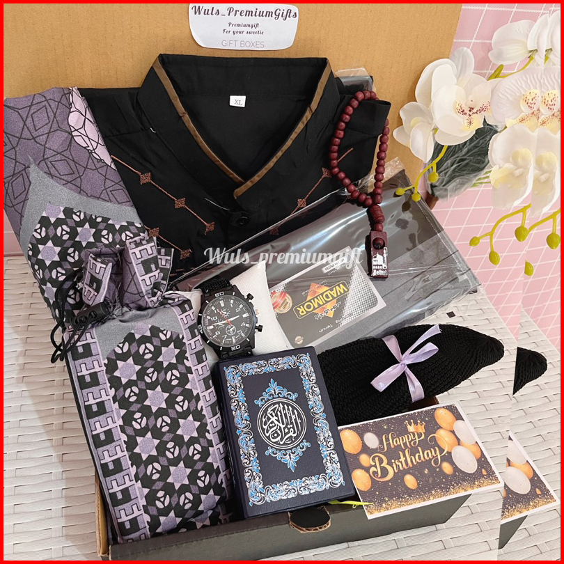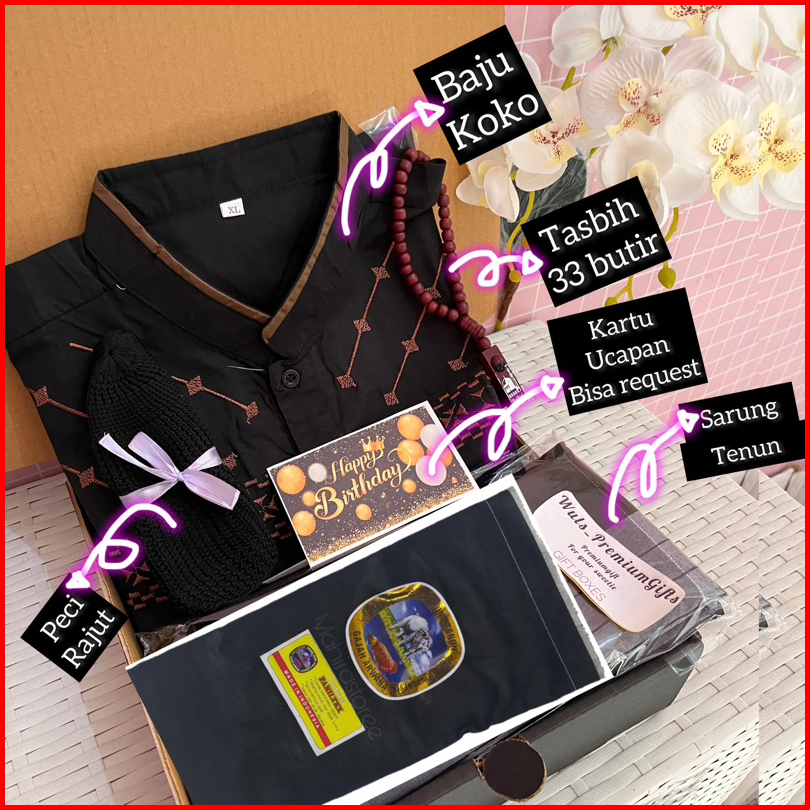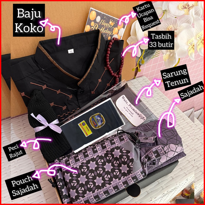 Hempers Kado Giftbox Idul Adha Jumatan Cowok Baju Koko Hitam Elegan Jumatan Murah Unik Sarung