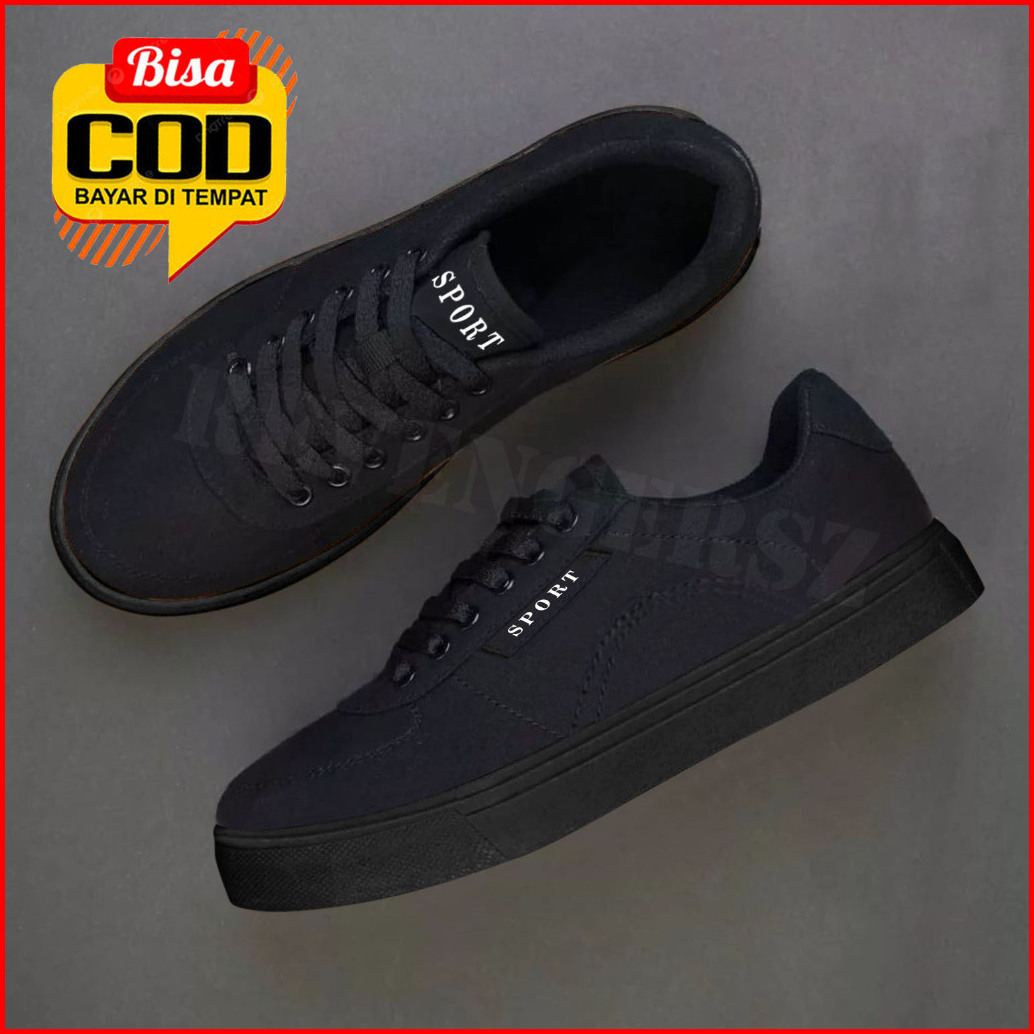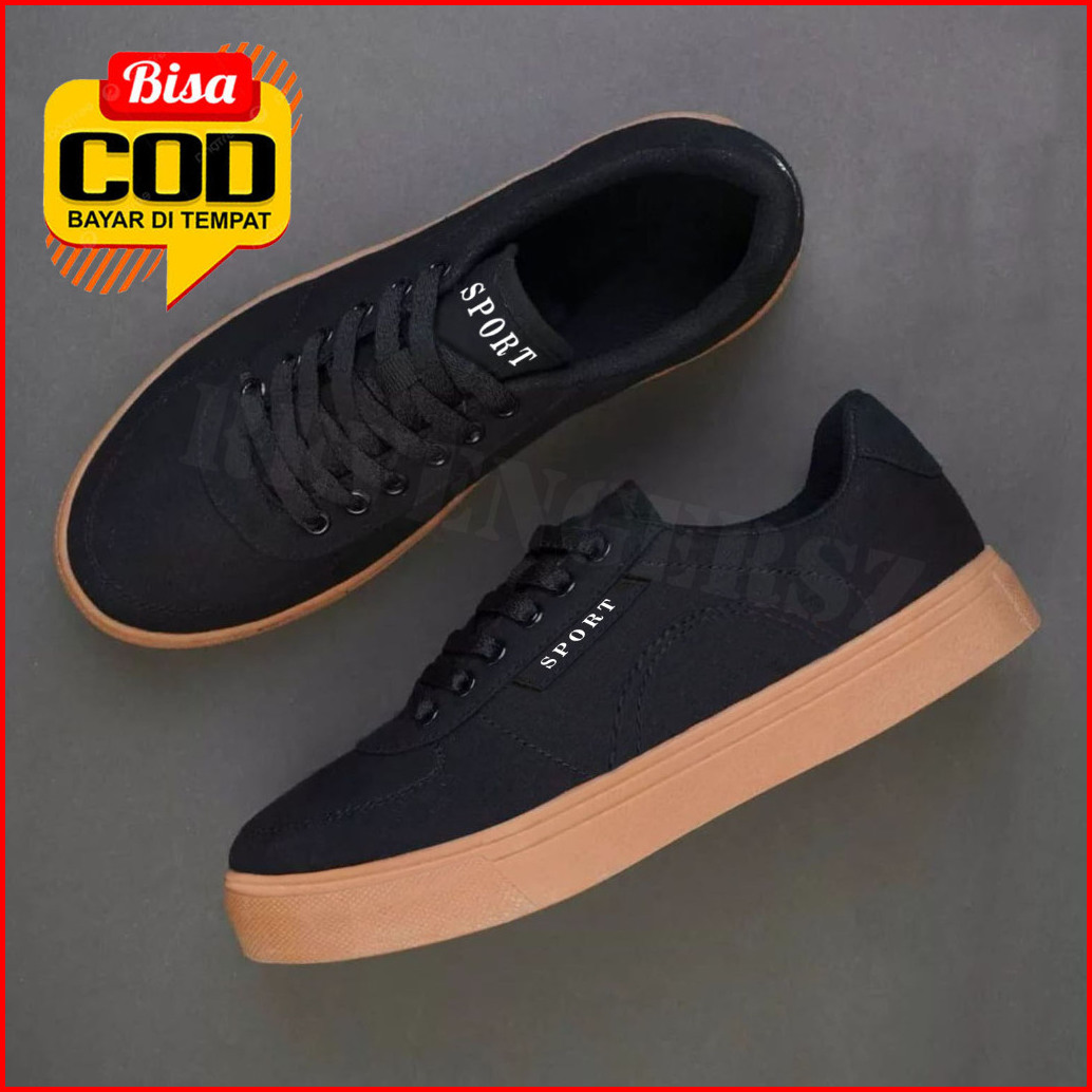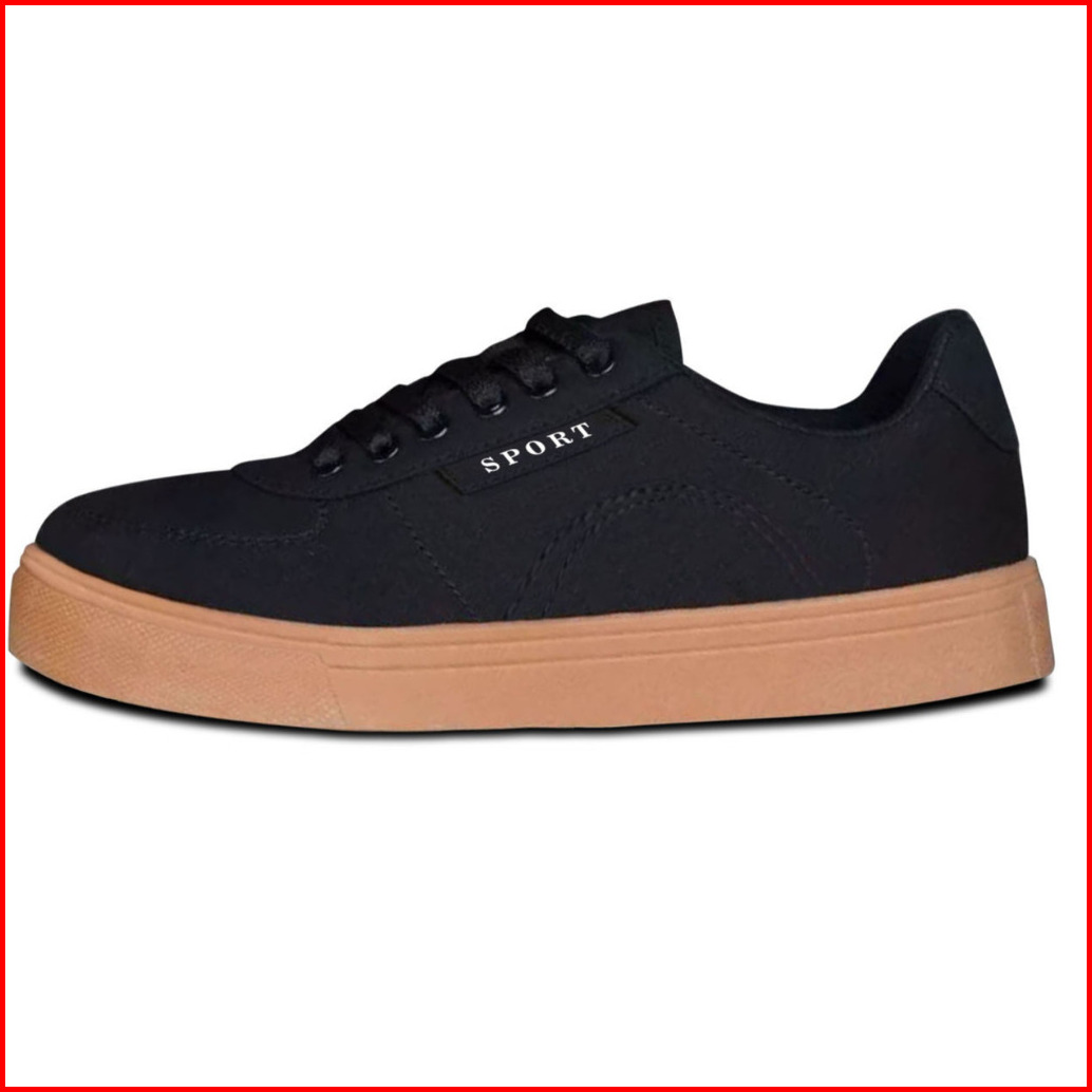 Sepatu Sneakers Pria Wanita Black Cream Sepatu Sneakers Full Kanvas Sepatu Kasual