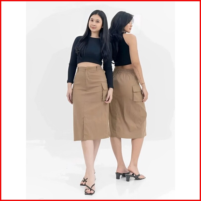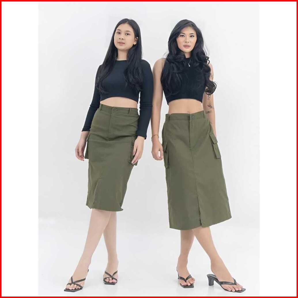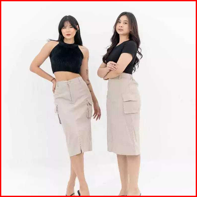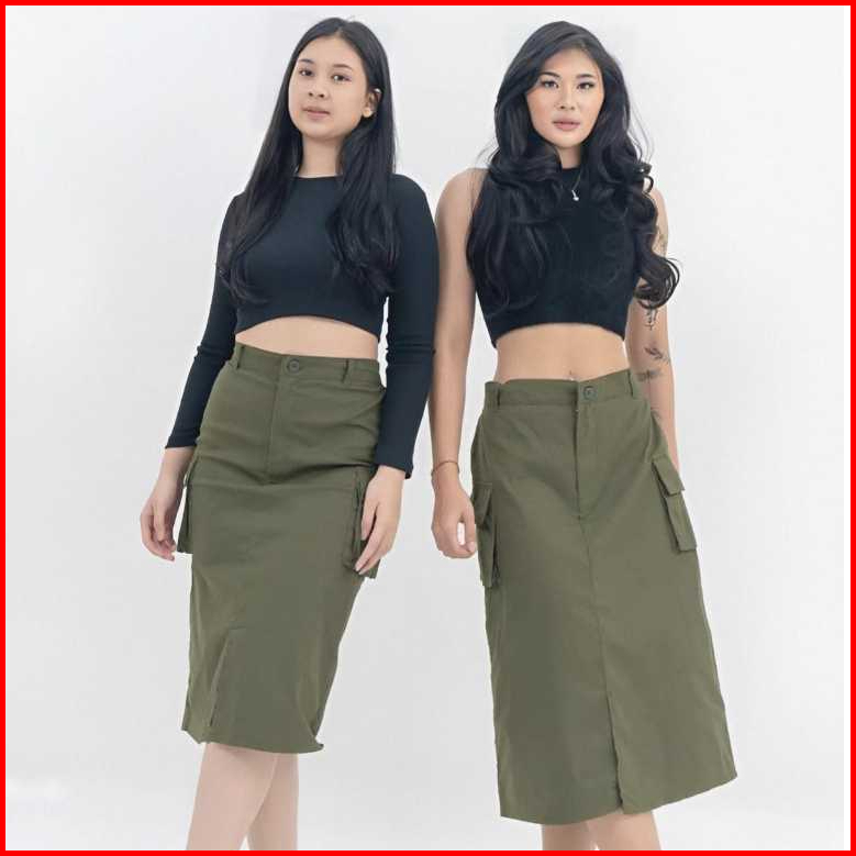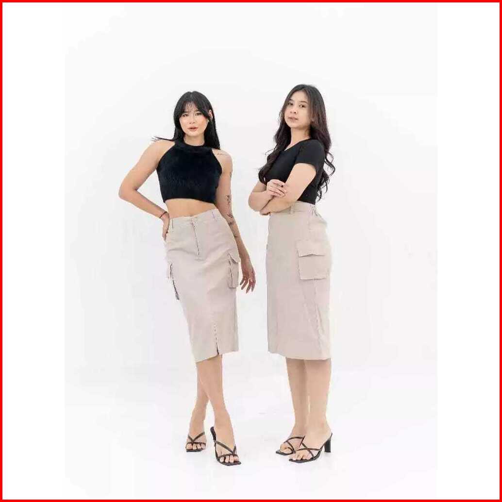 Cassa Skirt Rok Cargo Wanita 7 8 Korean Style Katun Combed Premium Tebal