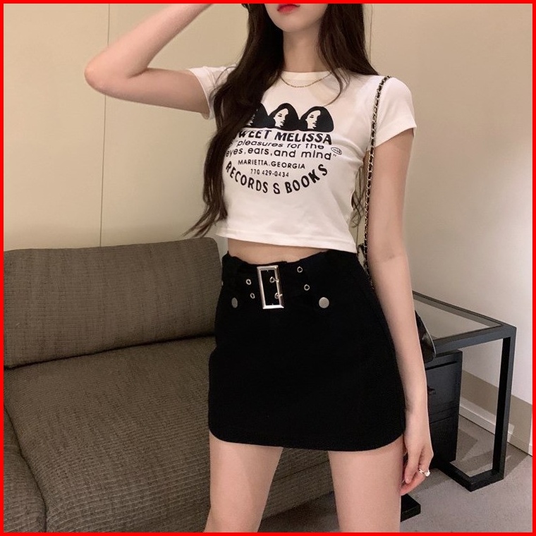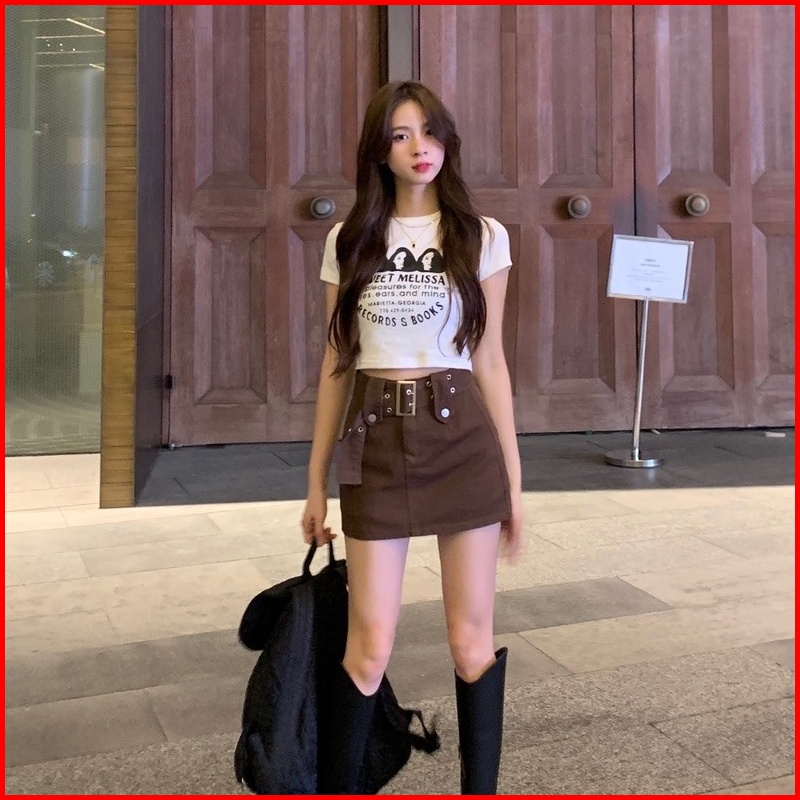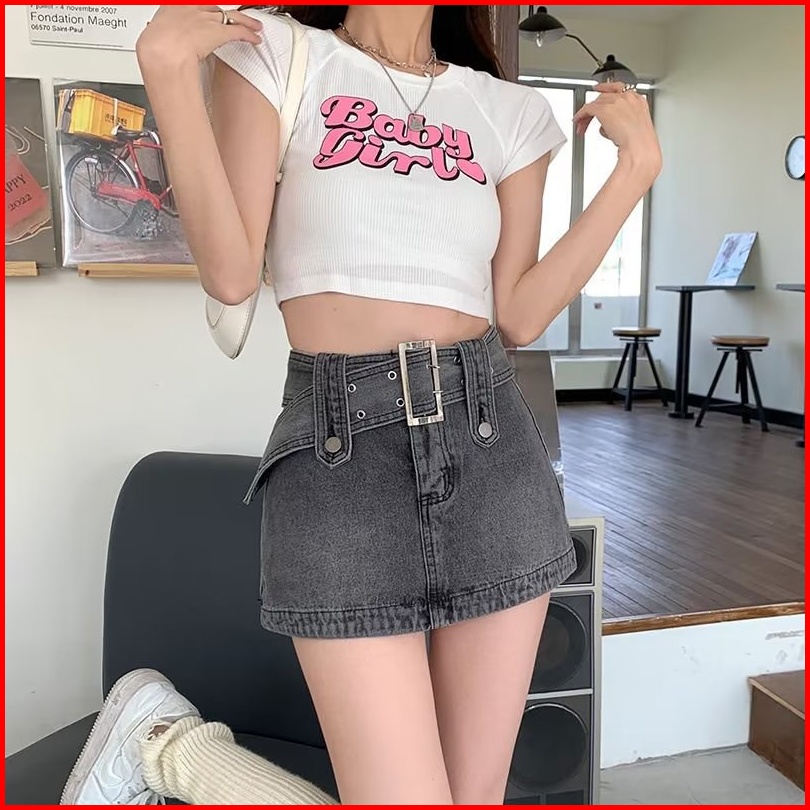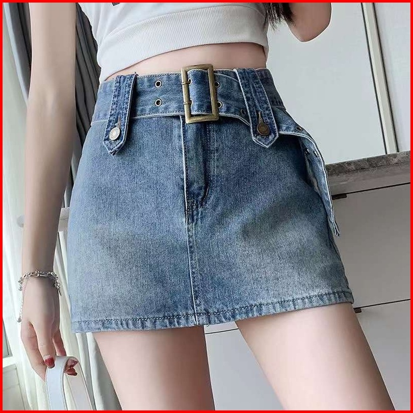Rok Denim Merah Muda Wanita Musim Panas Rok A-line Pinggang Tinggi Rok Seksi Korea