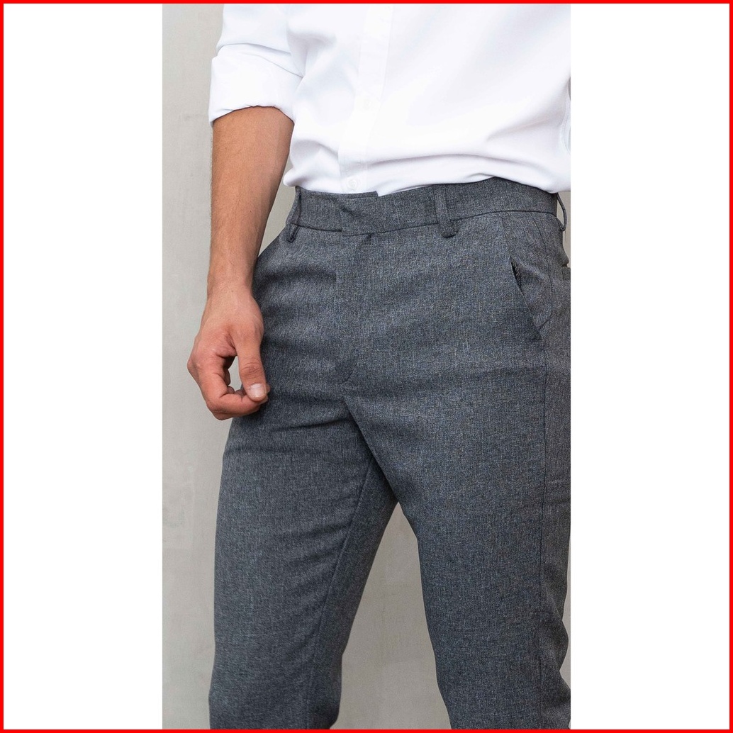 Big Size Celana Bahan Kantor Formal Kerja Pria Slim Fit Abu Medium Pants Trouser