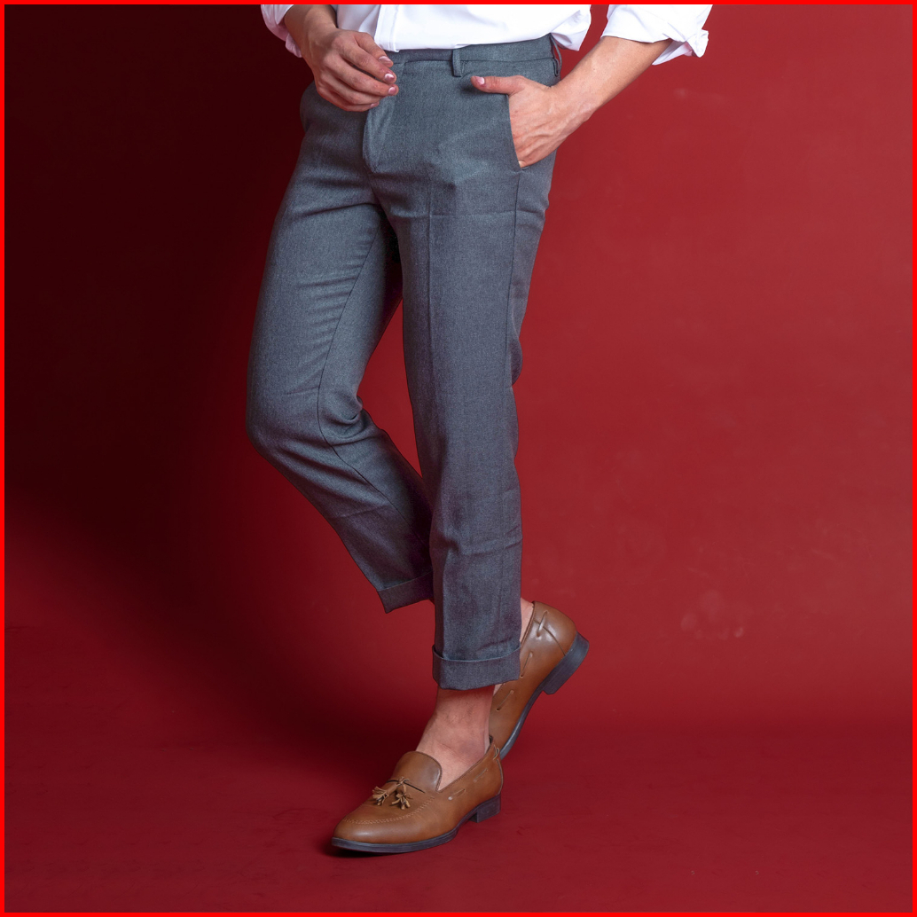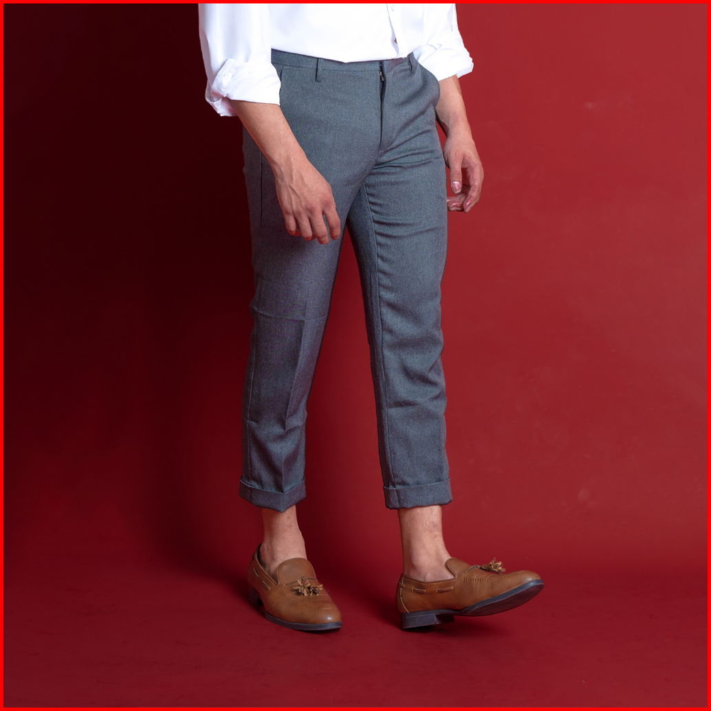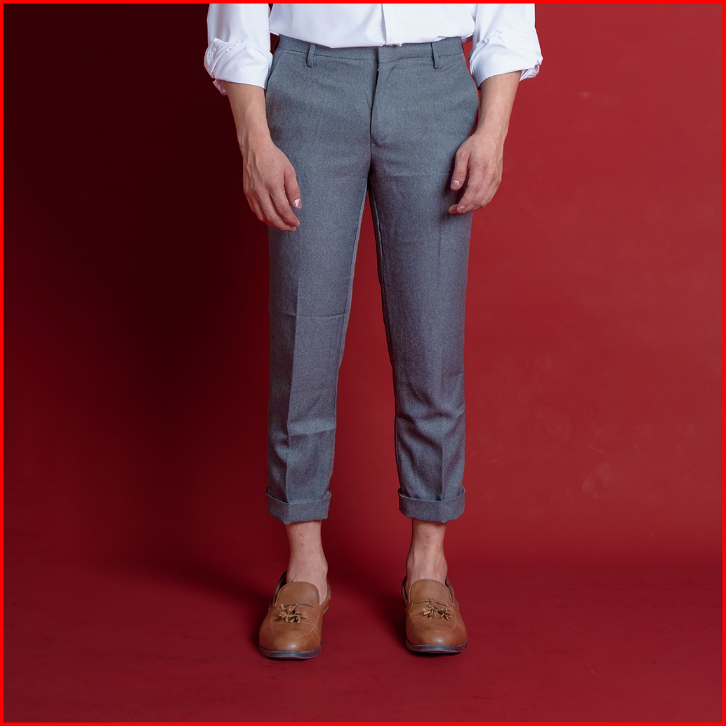 Big Size Celana Ankle Cropped Pants Slim Fit Celana Kerja Bahan Sirwal Abu Muda