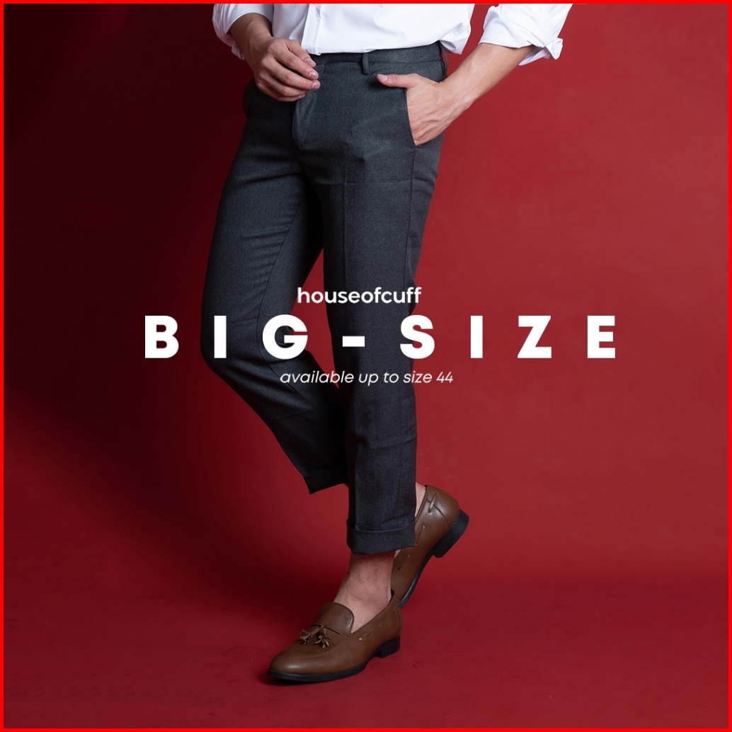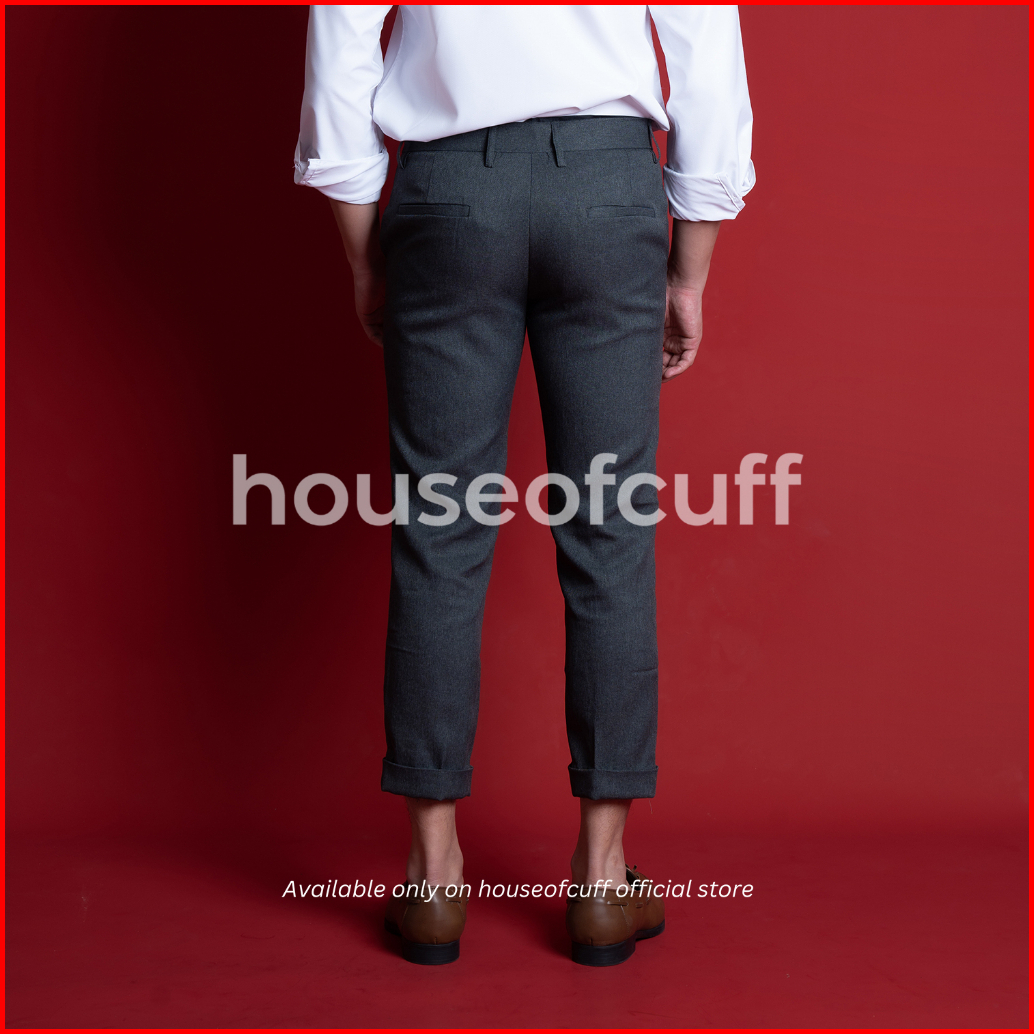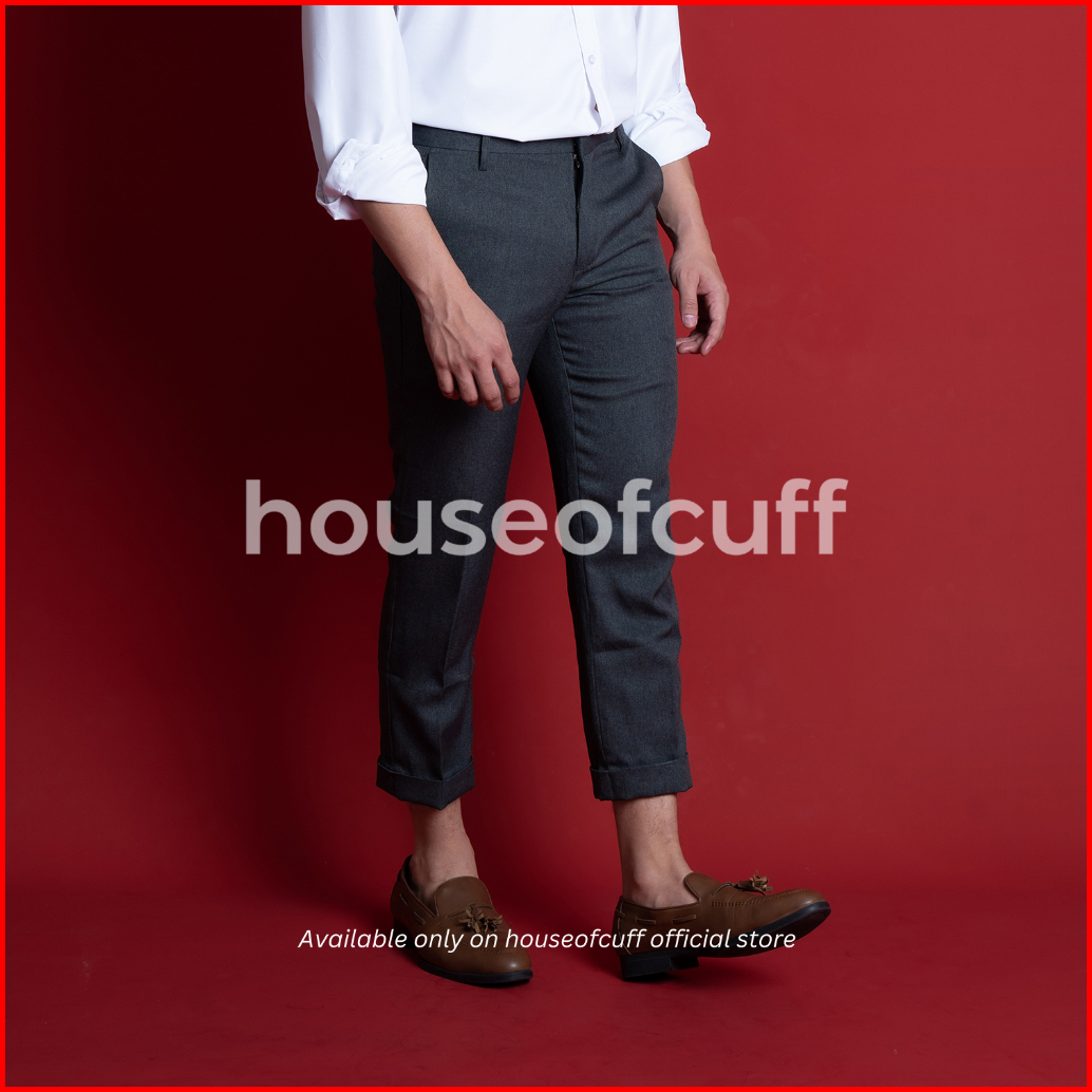 Big Size Celana Ankle Cropped Pants Slim Fit Celana Kerja Bahan Sirwal Abu Tua