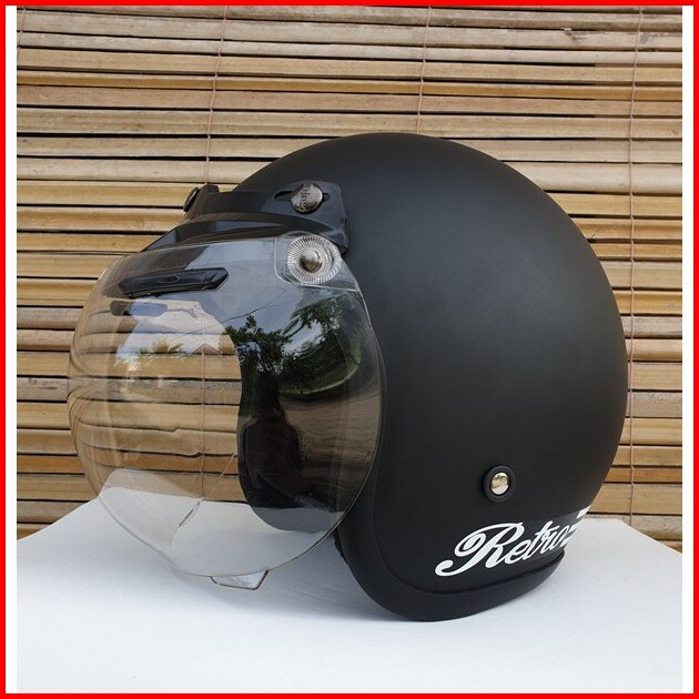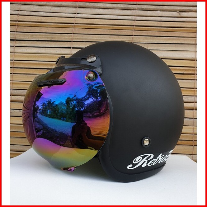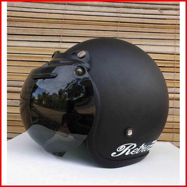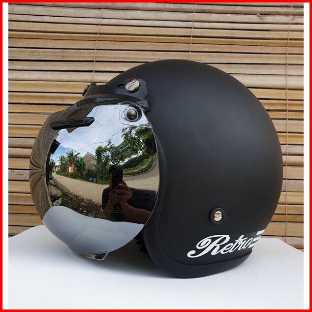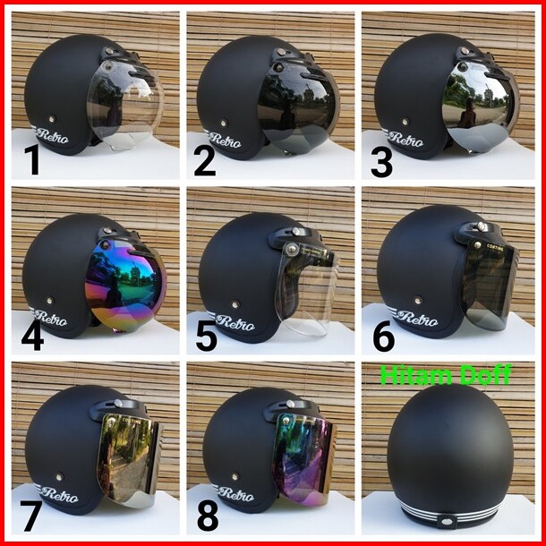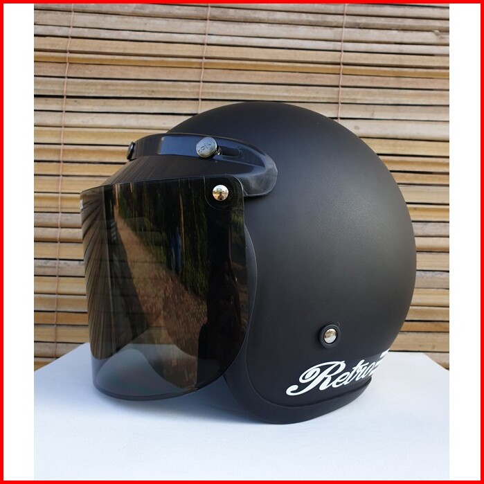 Helm Bogo Dewasa Wanita Pria Cewek Cowok Warna Hitam Dof Motif Tulisan Retro